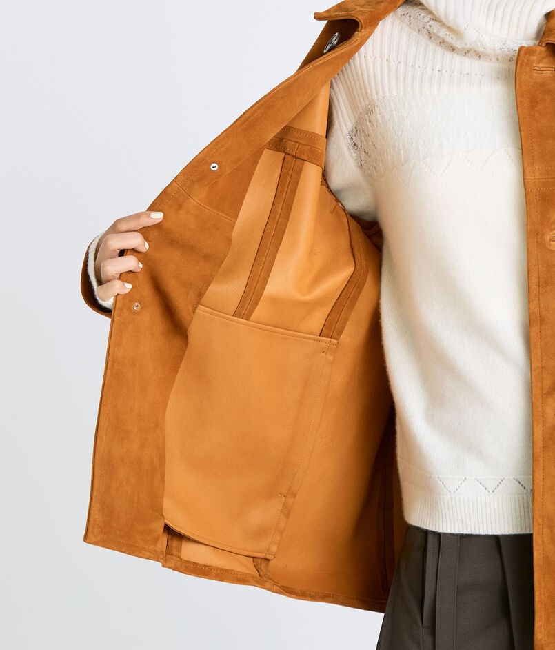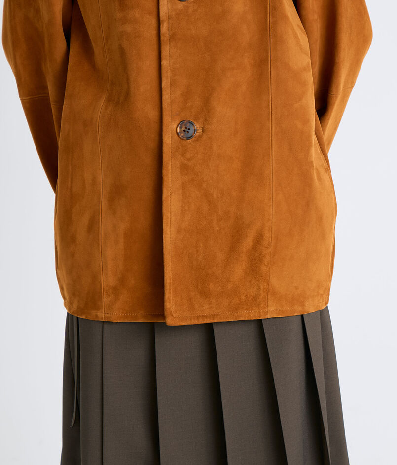 ベビーゴート原皮のみを使用した薄く軽い素材感が魅力的なカバーオール。