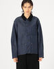 メンズサイズのカバーオールを大胆にカットオフしたような、構築的なオーバーサイズシルエットのカバーオールジャケット。