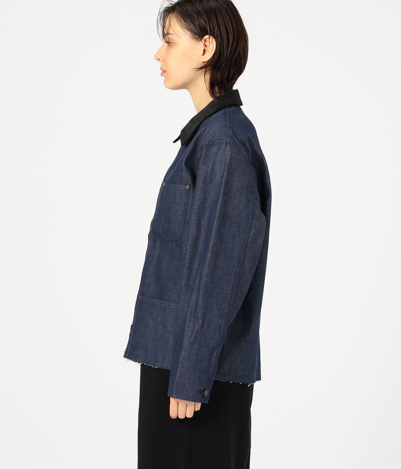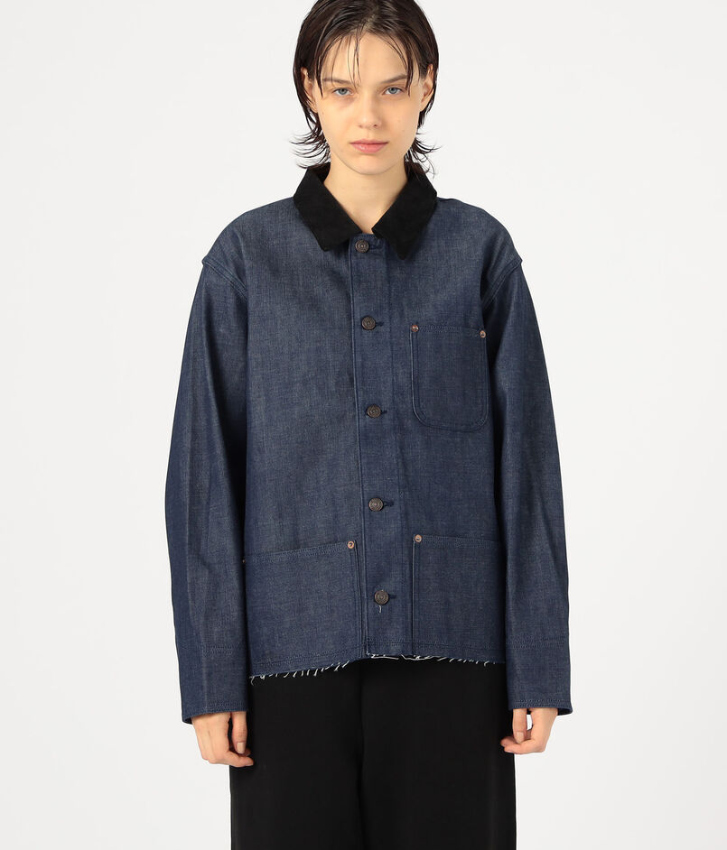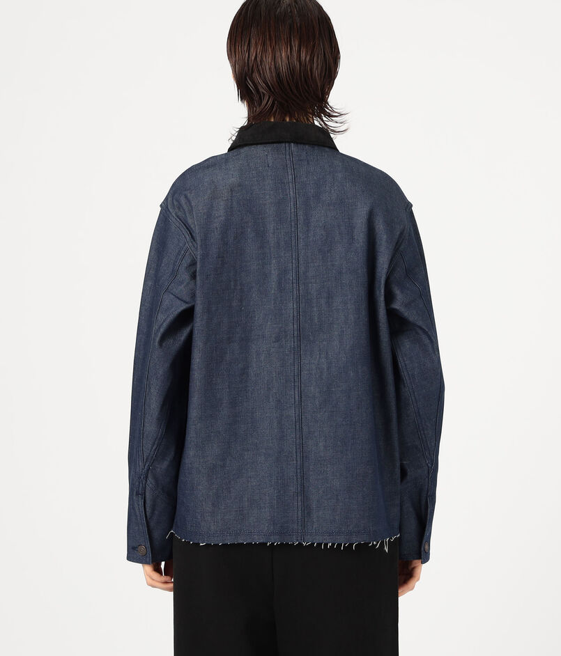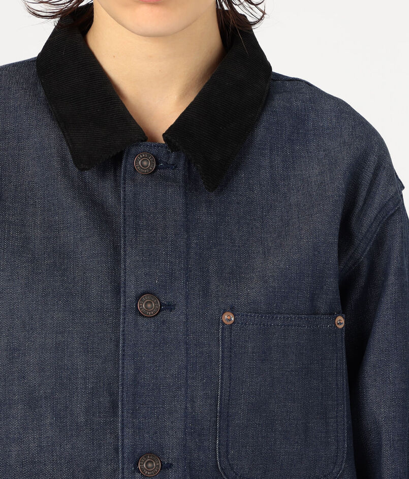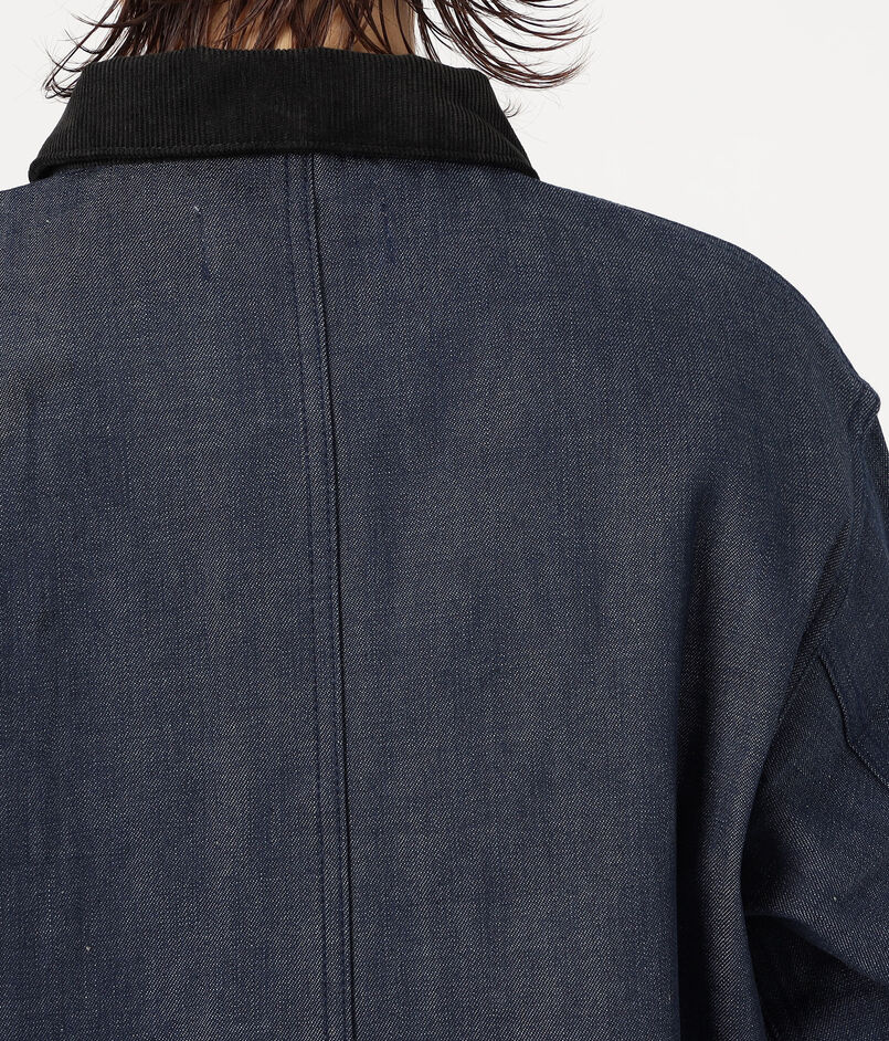 11オンス2/1綾のやや薄手のデニムをリジットやや軽めの素材と、コーディロイの衿がアクセントです。