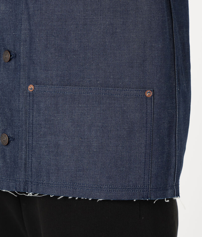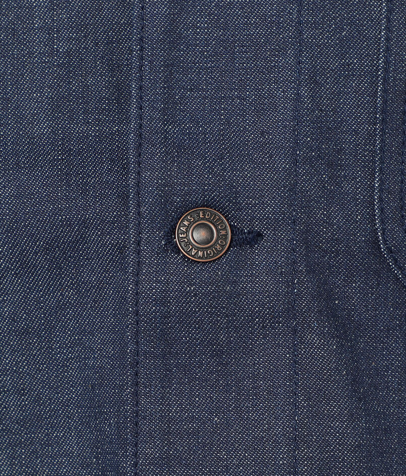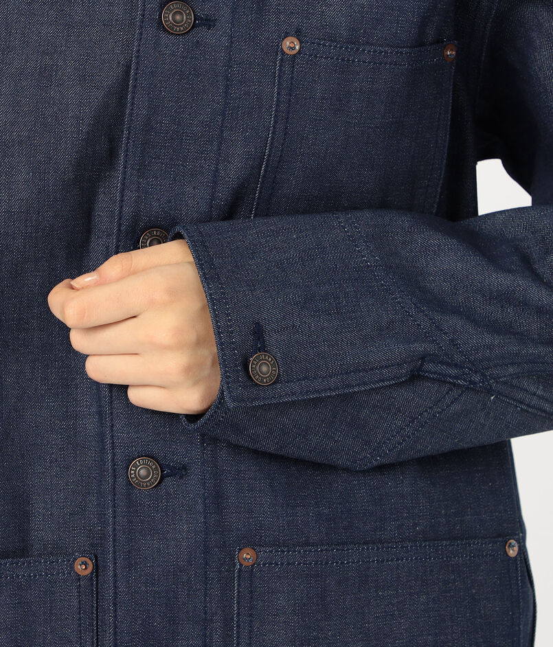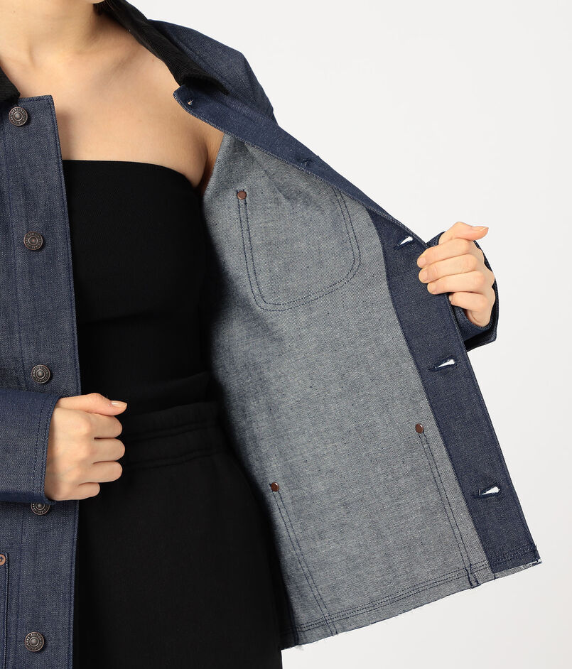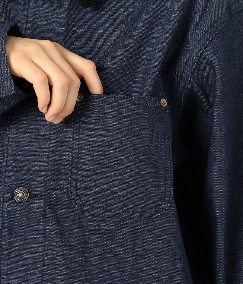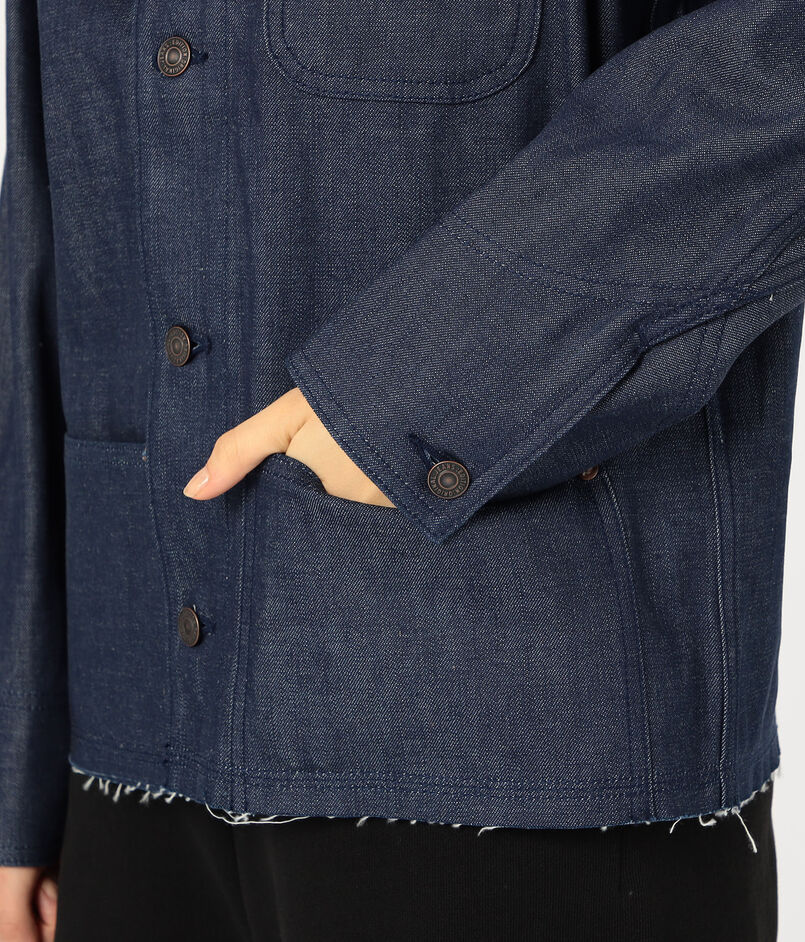 11オンス2/1綾のやや薄手のデニムをリジットやや軽めの素材と、コーディロイの衿がアクセントです。