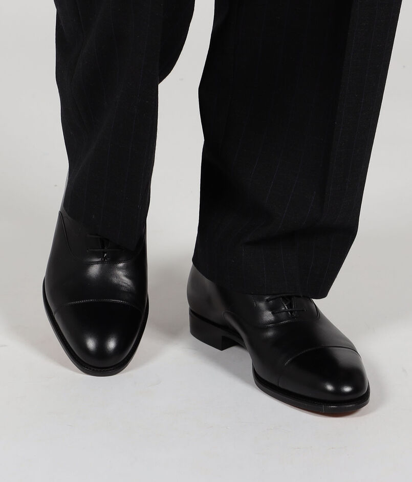 数あるストレートチップの中でも、他に類をみないエレガントな雰囲気を纏うモデル。キャップ部分に施された、通称*「スワンネック」と呼ばれる優美なステッチは、まさにブランドの格調高い意匠の一つです。普遍的なアイテムだからこそ、その品質と木型の違いが如実に表れます。