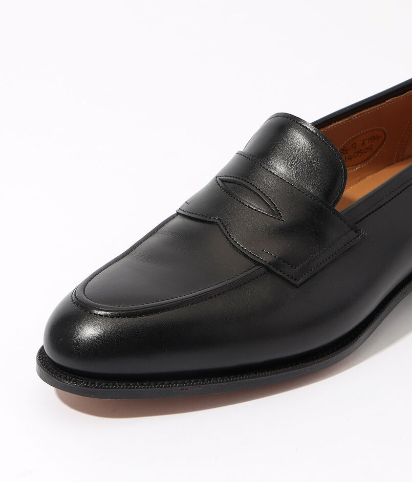 ローファーの定番ラストである「184」は、つま先にかけてわずかに絞られた楕円形の美しいシェイプが特徴です。これにより、カジュアルさを抑え、ドレススタイルにも対応する端正なルックスを実現しています。また、踵(かかと)のトップラインにかけてなだらかな傾斜が付けられているため、ローファー特有の踵の抜けを軽減し、快適な履き心地を提供します。