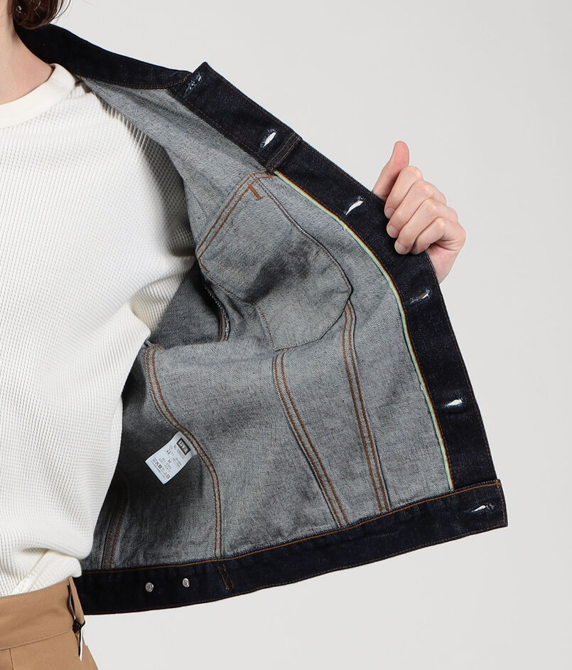 〈EDWIN〉に生地、デザインを別注したトラッカージャケット。
