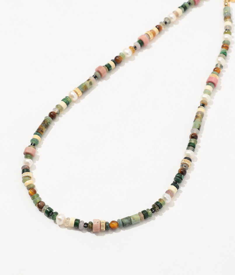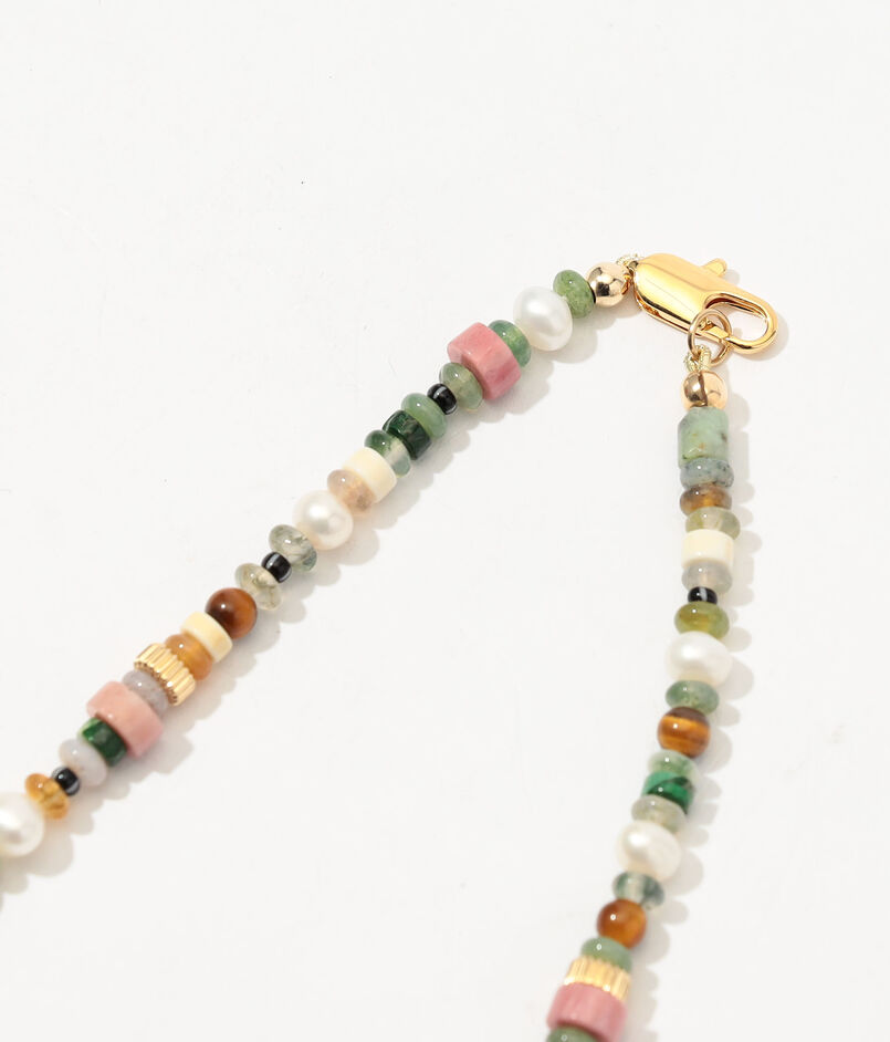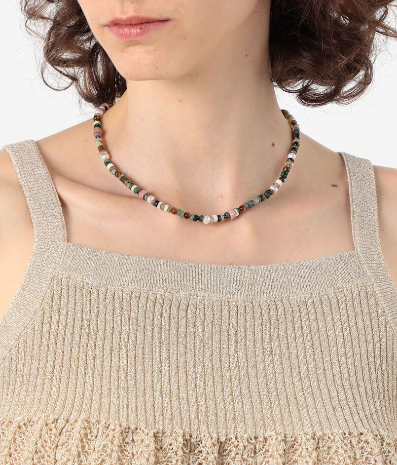 淡水パールとさまざまなセミプレシャスストーンを組み合わせたネックレス。