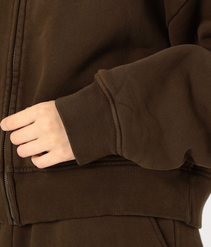 ジャストな着丈のボディにたっぷりと余裕のあるスリーブデザインのバランスが絶妙なフーディー。