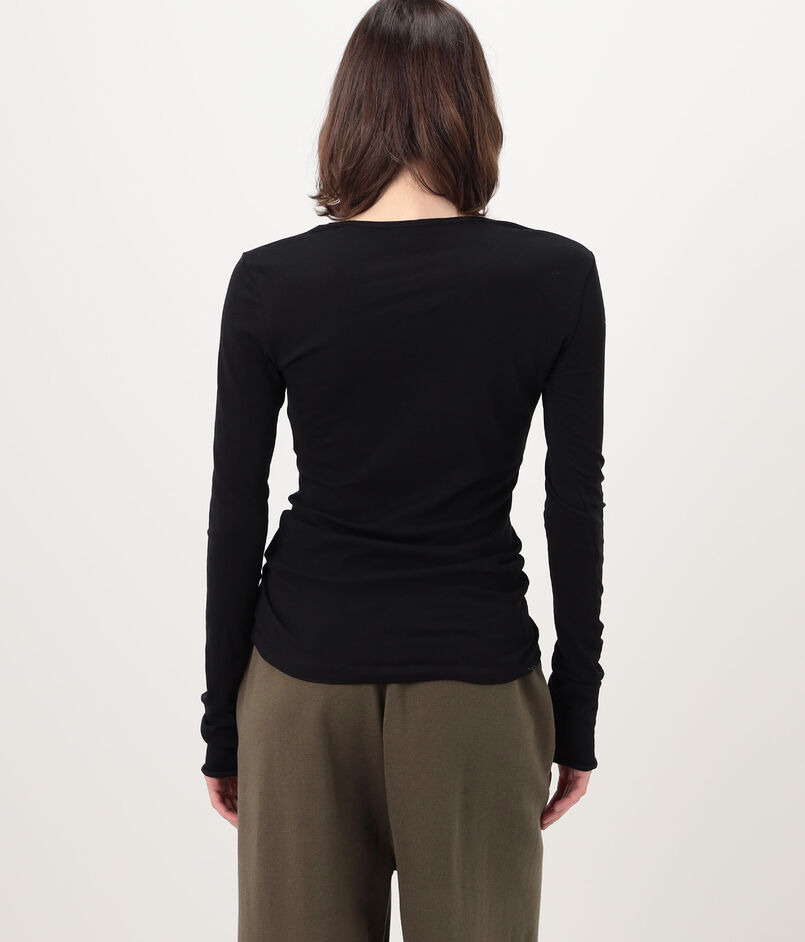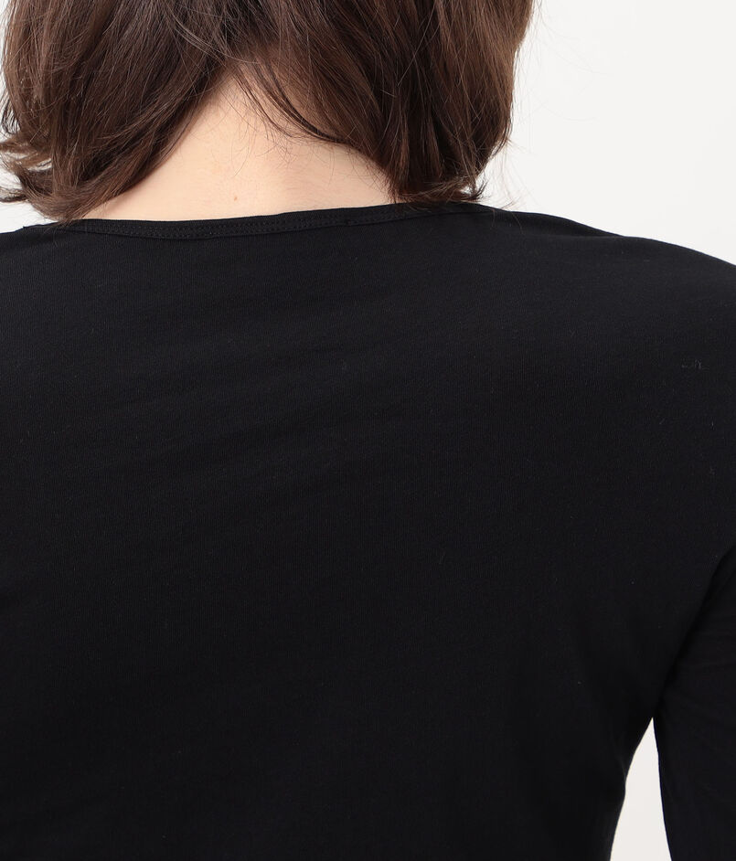 カジュアルすぎない首元のあきが、一枚ではもちろんインナーとして着たときにも違いを見せてくれます。