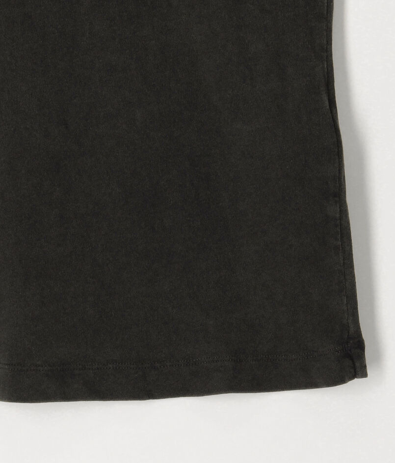 やや太めに施された首元のリブが、さりげなくも全体を引き締めるポイントになり、さらりとシャツを羽織った中にもぬかりない上品な佇まいです。