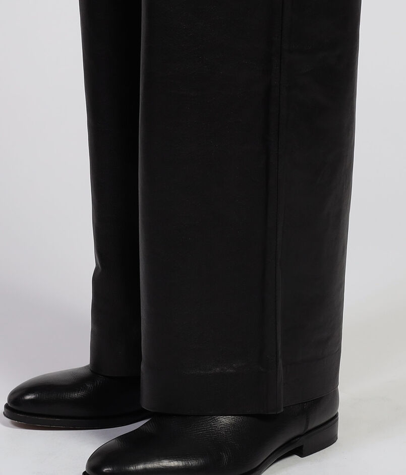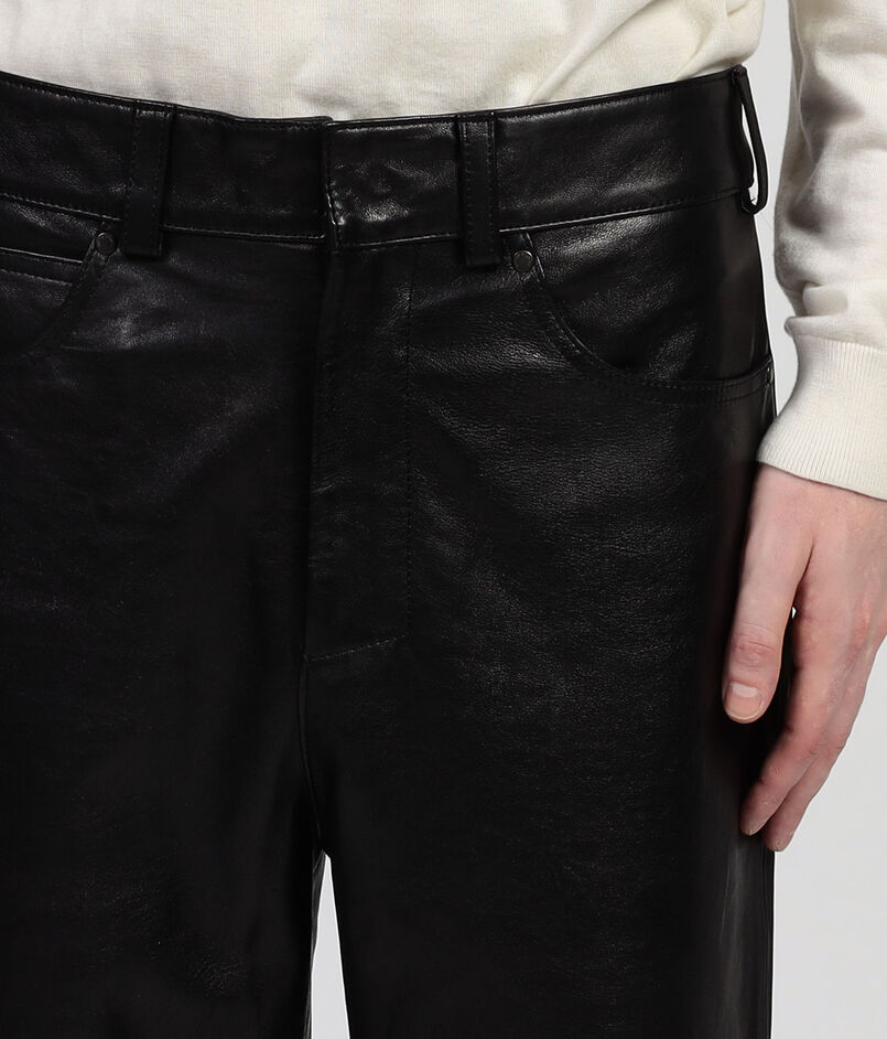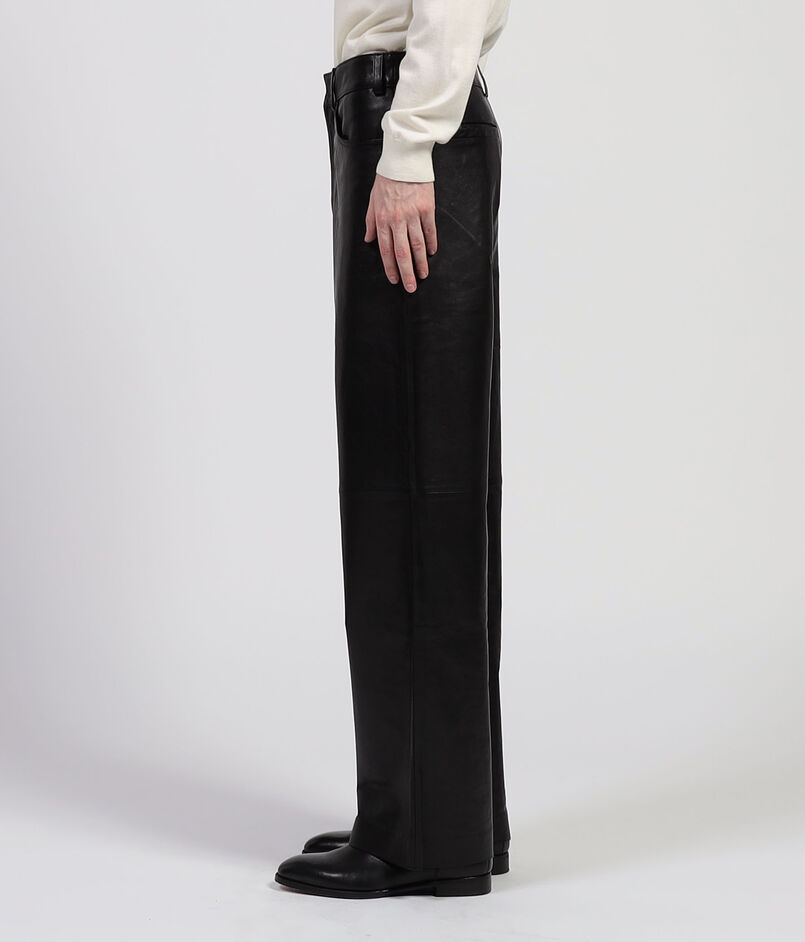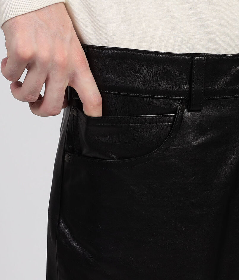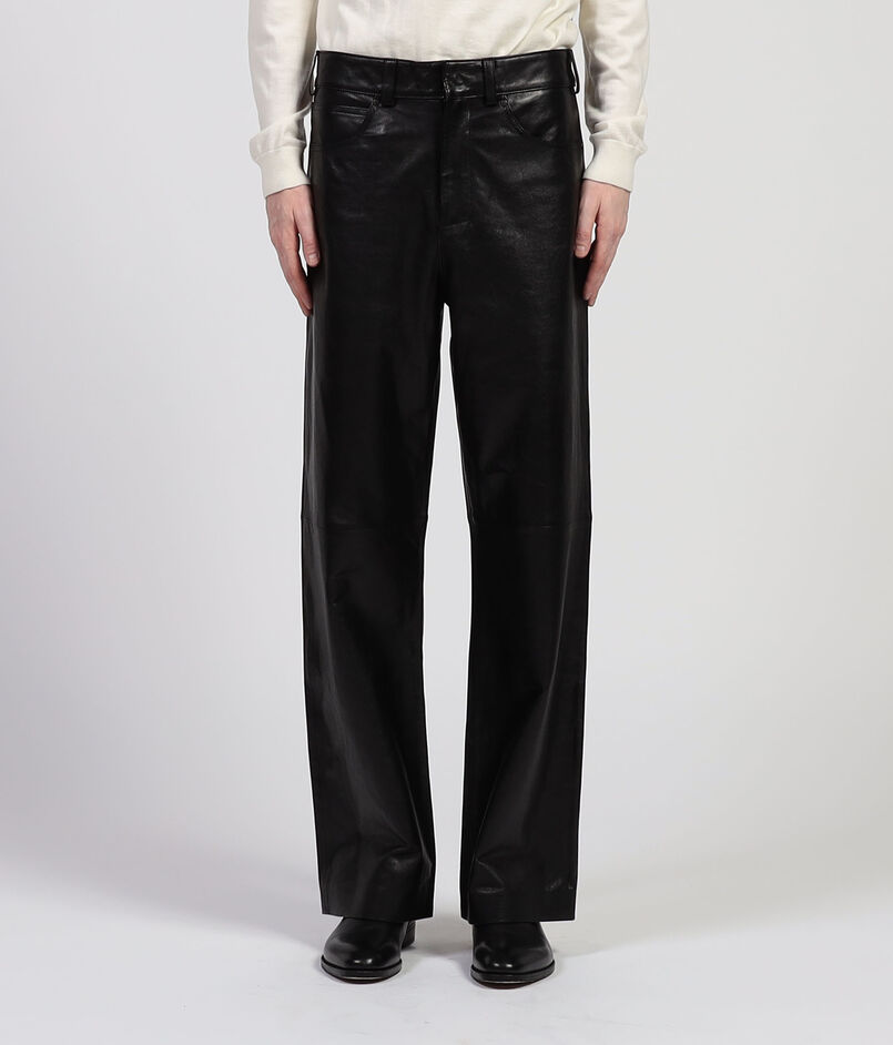 5パケットデザインにシープスキンレザーの素材が魅力のストレートレッグパンツ。