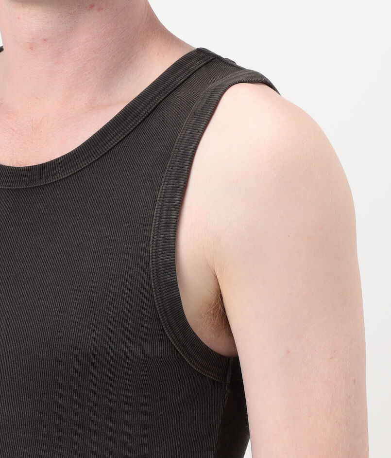 伸びやかで柔らかながらも、透けにくく頑丈なリブ素材を使用したタンクトップ。