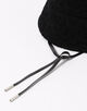 レザーコードとシルバーのパーツも、モードな佇まいのポイント。