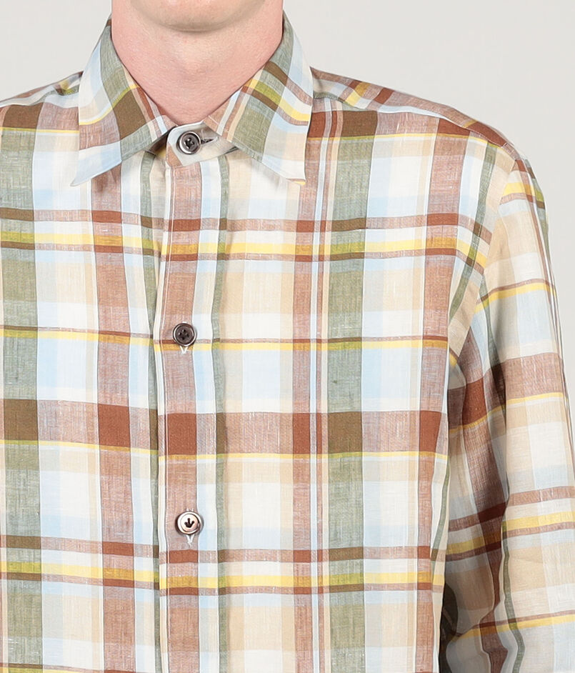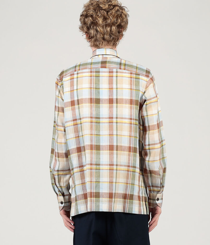 清涼感のある素材と色柄の組み合わせが特徴のオーバーシャツ。