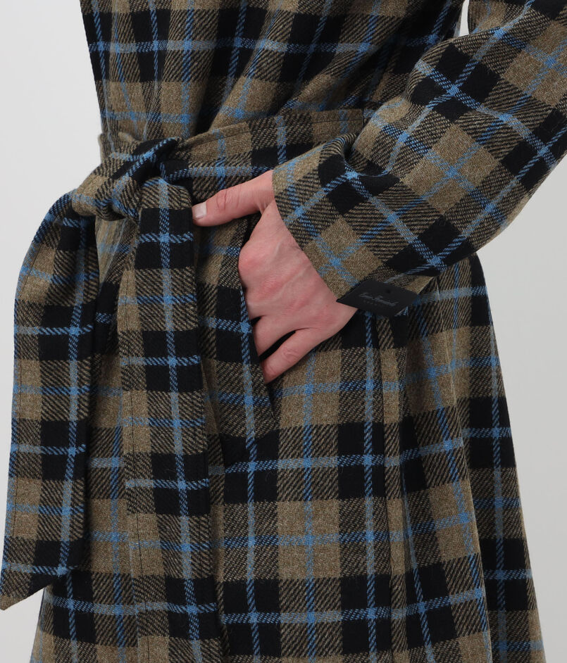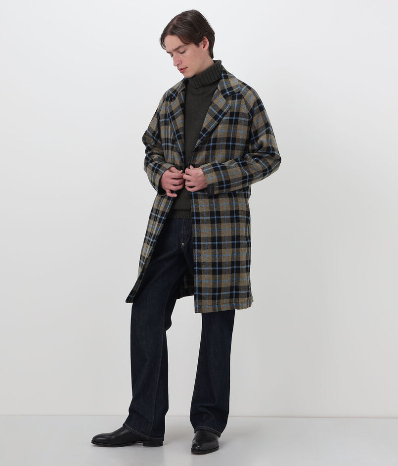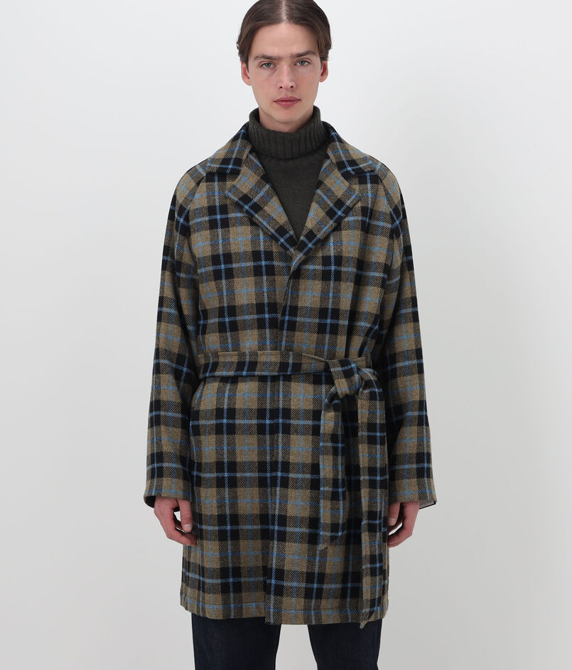 ERRICO FORMICOLA ウールチェック ボタンレスベルテッドコート