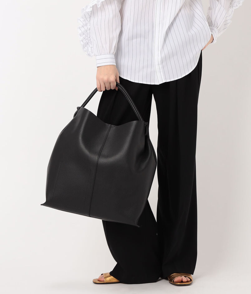サイドにタックを取り、丸みのある立体的なフォルムが印象的なワンハンドルのショルダーバッグ。ミニマムなデザインながらも印象的なフォルムが洗練された印象を与えます。