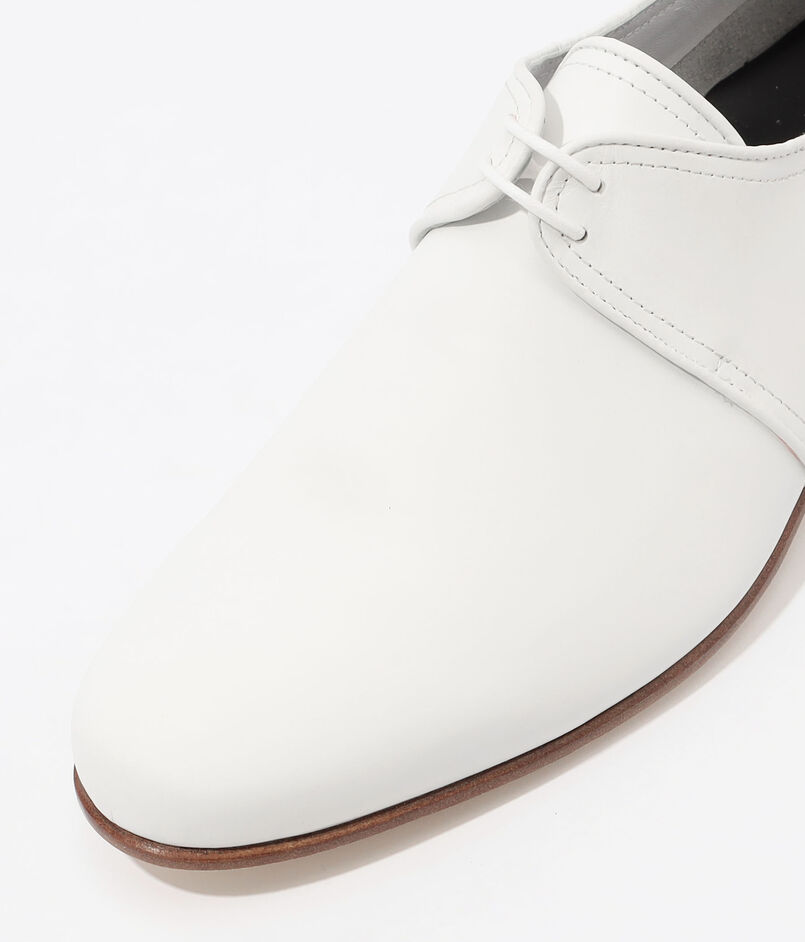 70年代後半のイタリア老舗シューメーカー向けに生産されてモデルのアーカイブを〈TOMORROWLAND〉エクスクルーシブモデルとして復刻。当時のイタリアらしくロングノーズと薄いアウトソールが特徴。ホワイトのスムースレザーと相まって少しキザな雰囲気が現代的に表現されています。