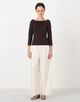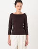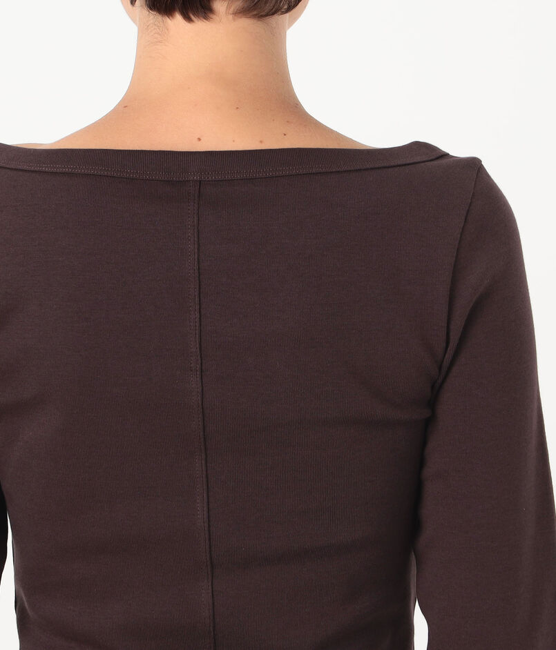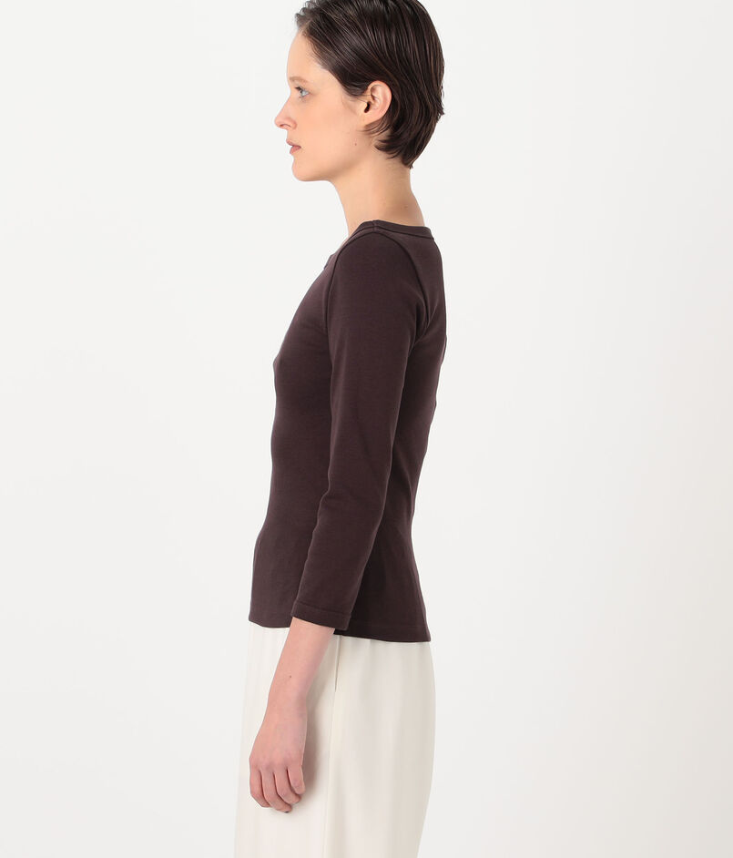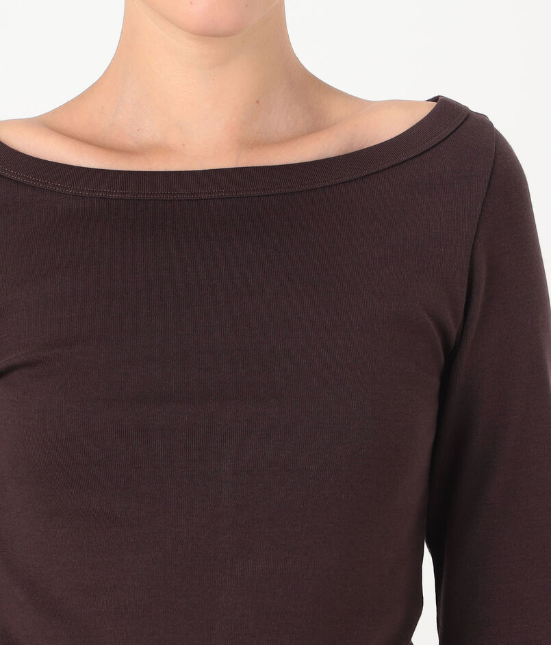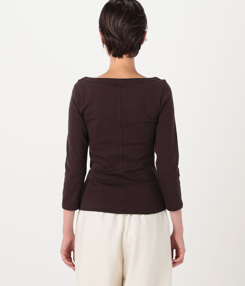 七分袖のクラシックなボートネックTシャツ。