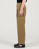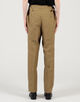 デザインの核となるのは、深い2インプリーツ、ベルトを不要とするサイドアジャスター、そして深く設定された股上です 。これにより、単に太いだけでなく、ウエスト周りはフィットしつつ、腰から裾にかけて優雅なドレープを描く美しいシルエットが実現されています 。