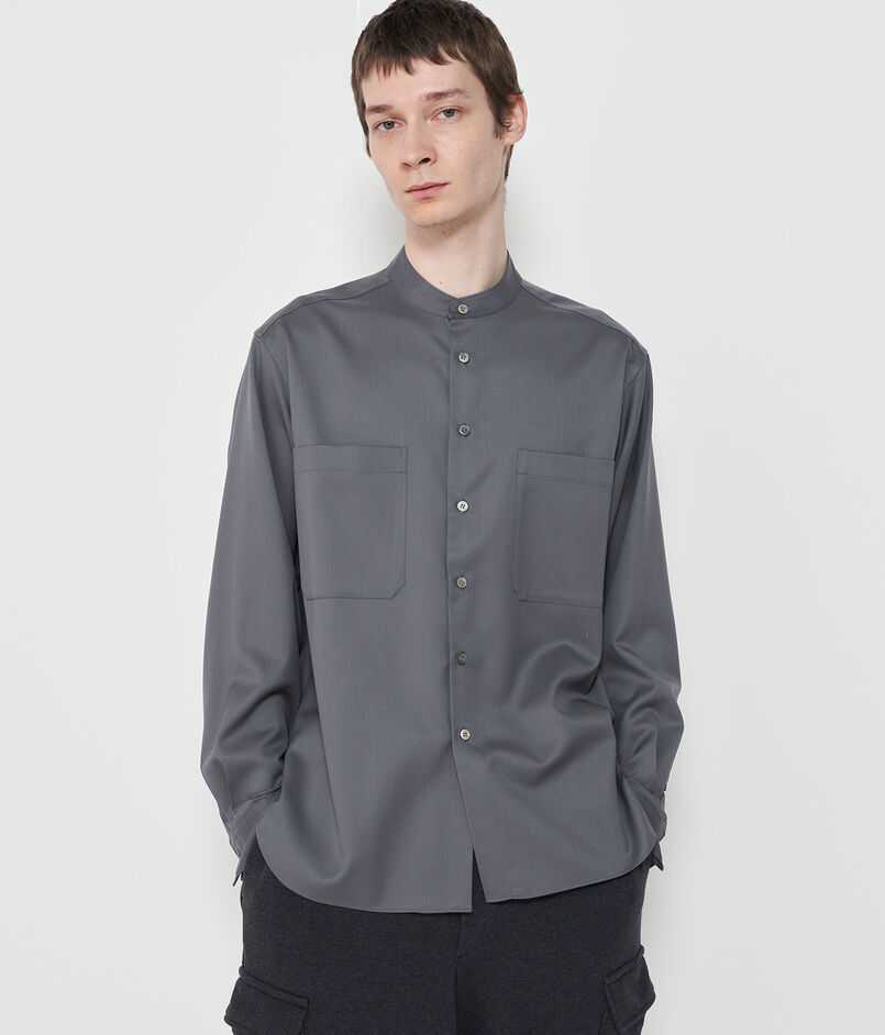 ウォッシャブルギャバジン スタンドカラーシャツ