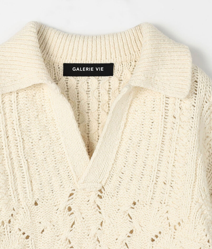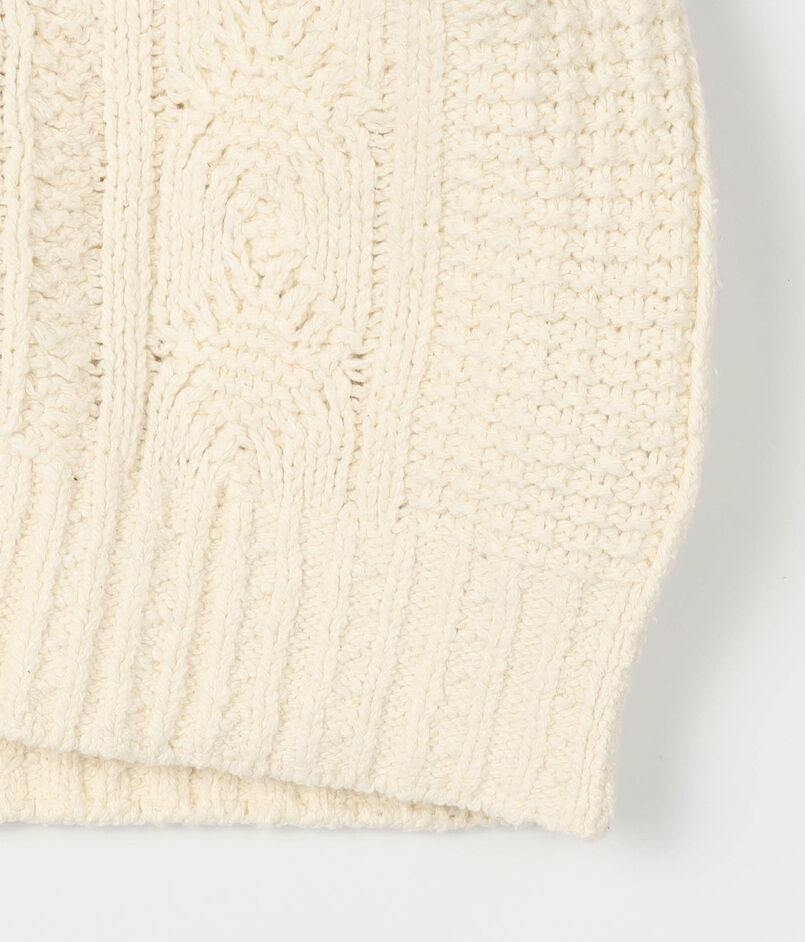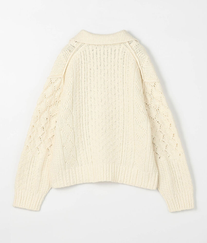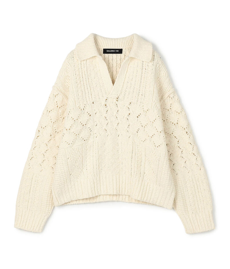 アラン柄に透かし模様を加えた、ライトな印象のプルオーバー。