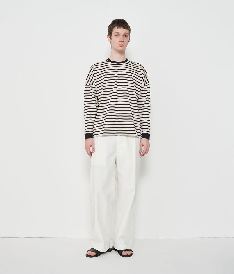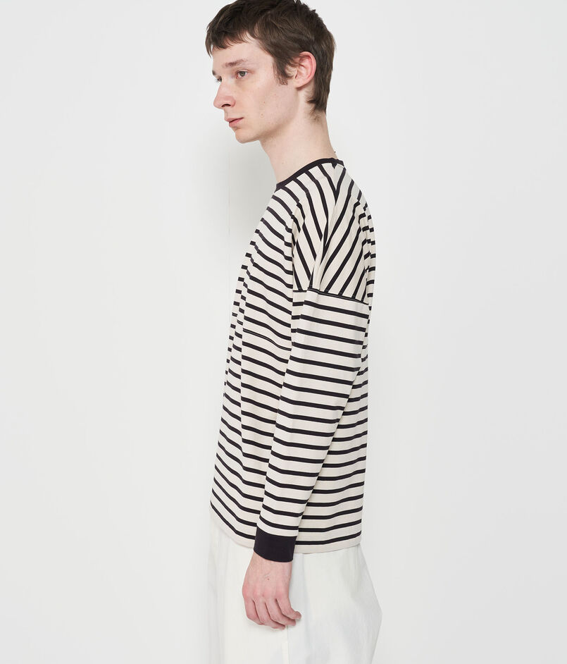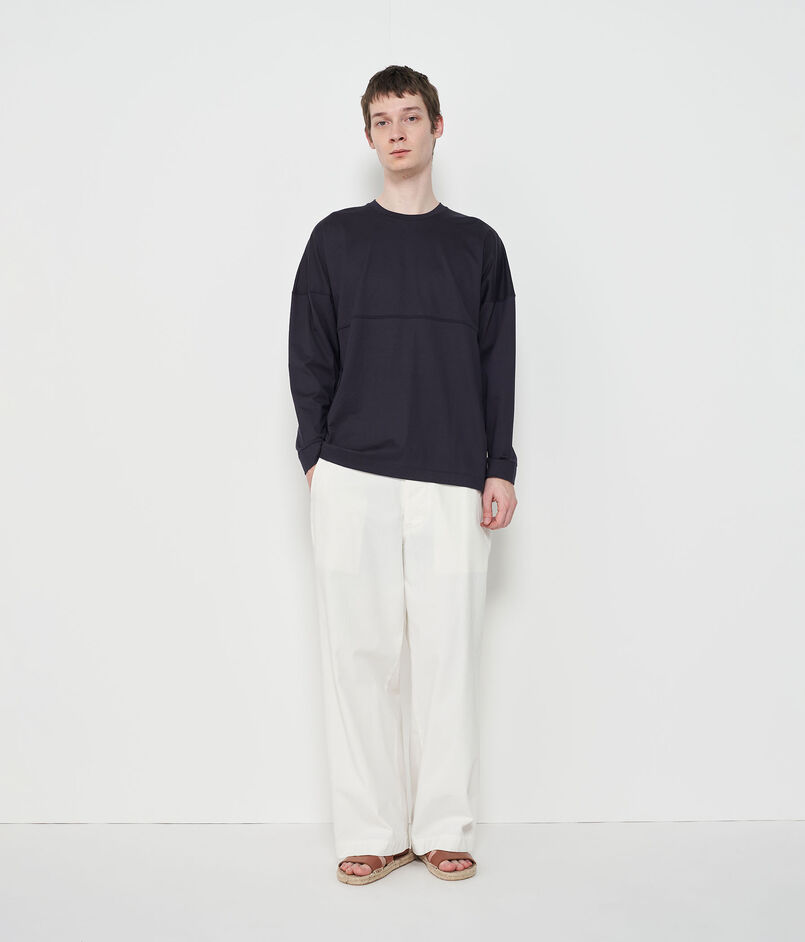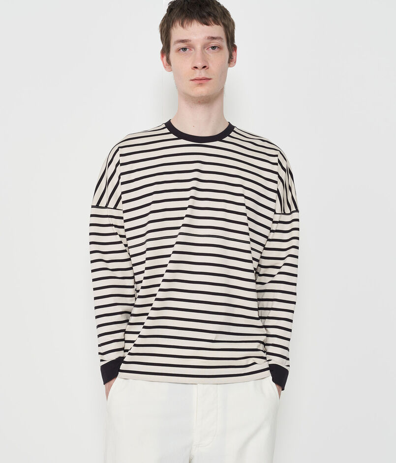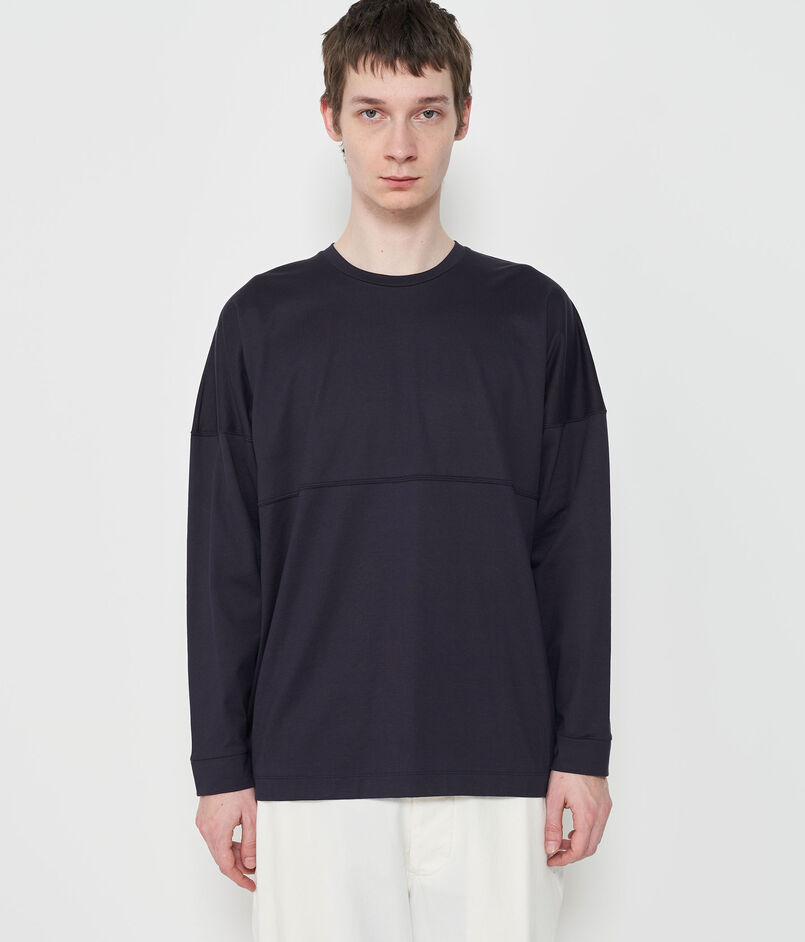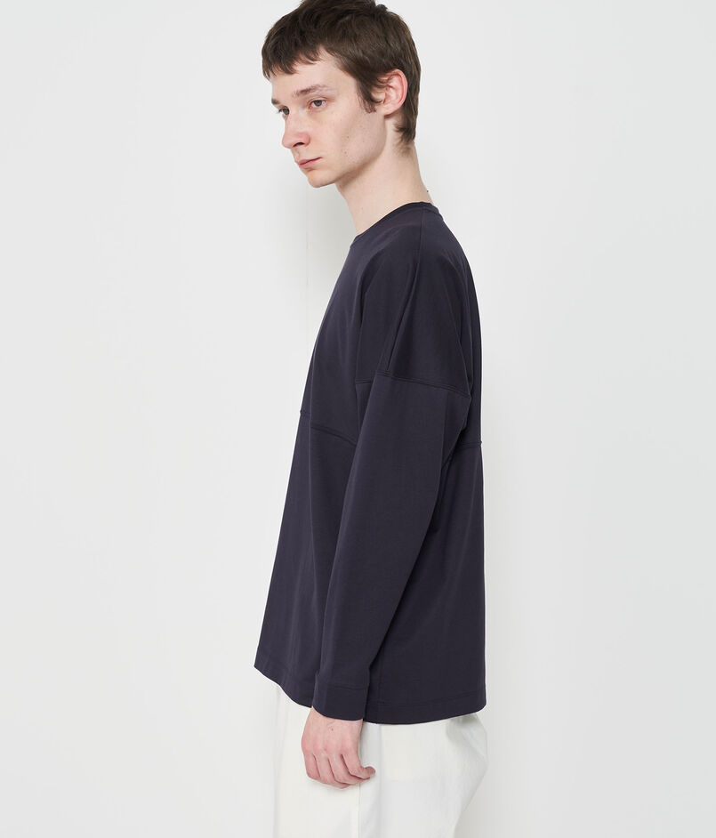 ロングスリーブTシャツはゆったりとしたボディと大胆なドロップショルダーのデザインで抜け感たっぷりの一着。