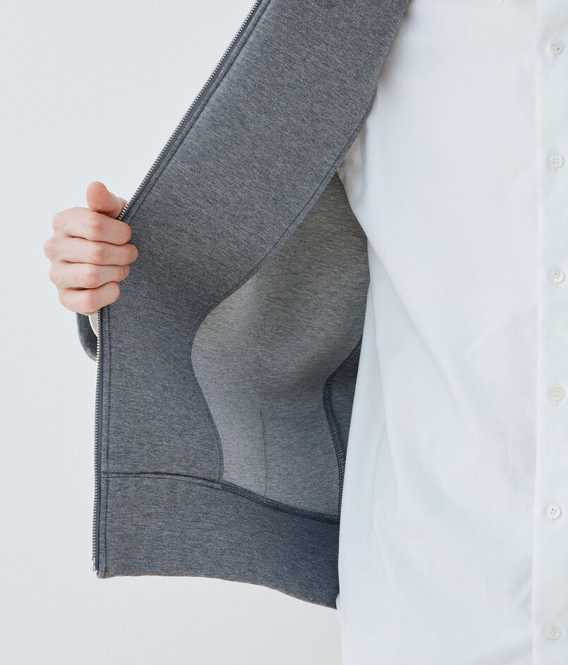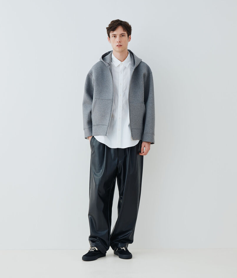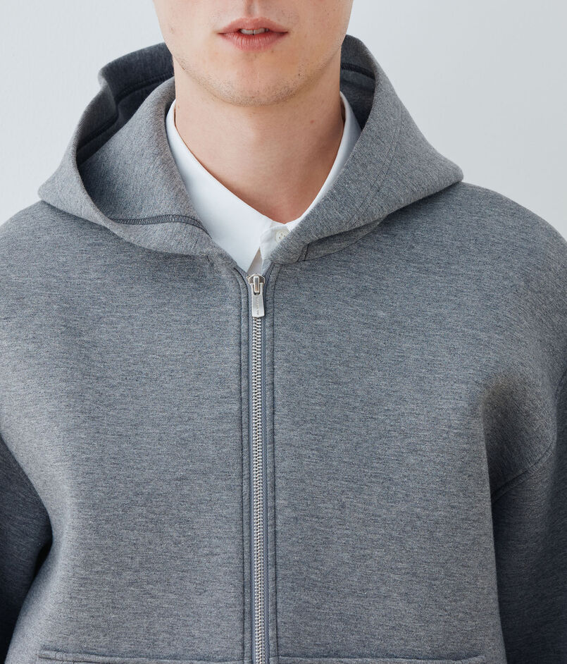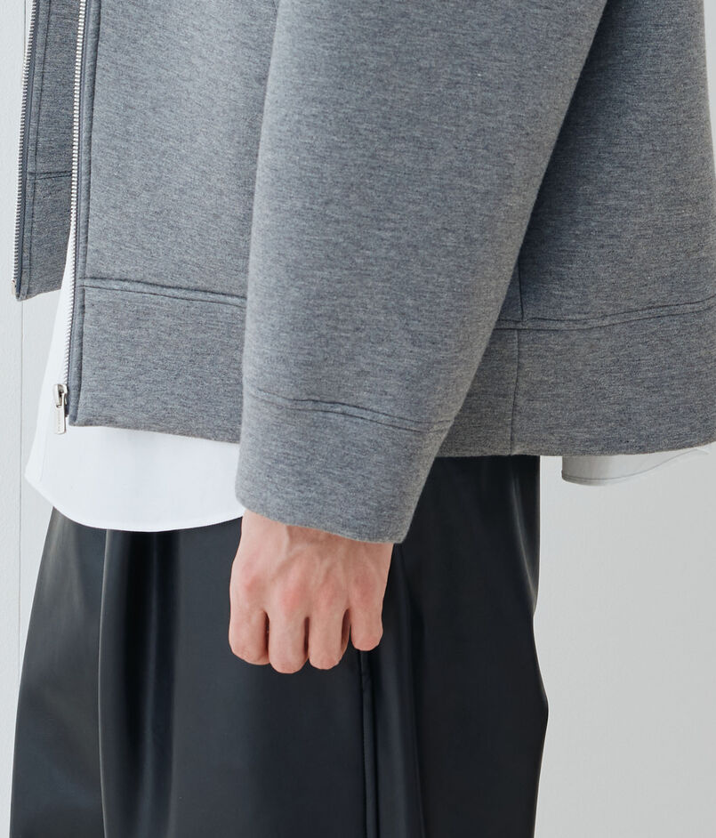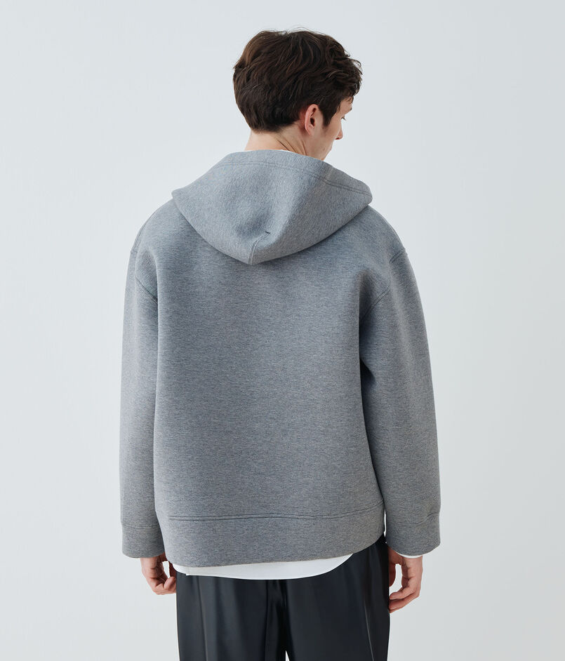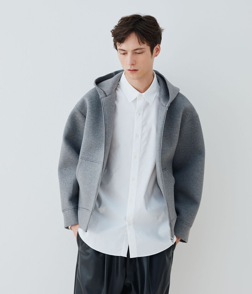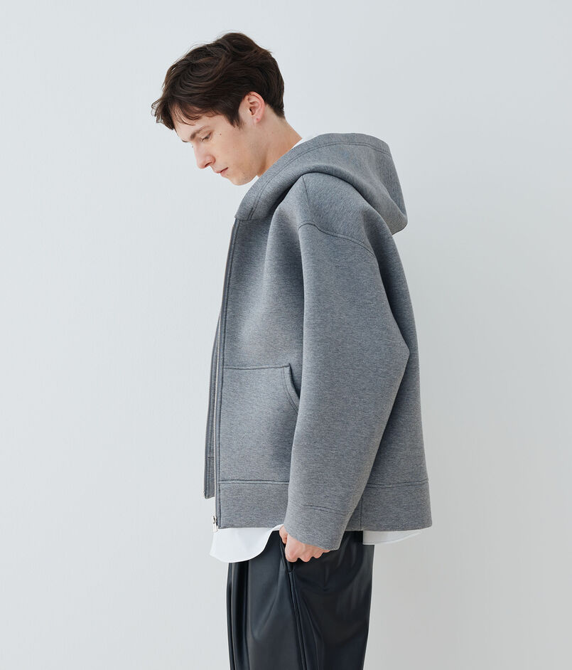 ダンボールニットと呼ばれている独自の技術で編まれた、フーデッドブルゾン。
