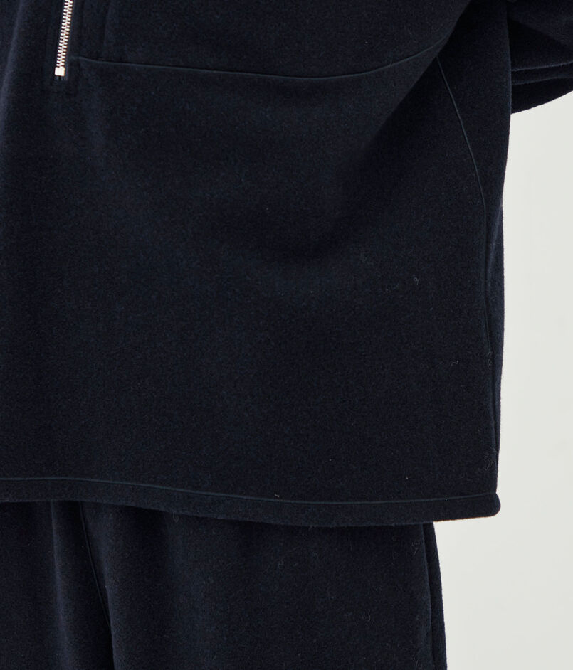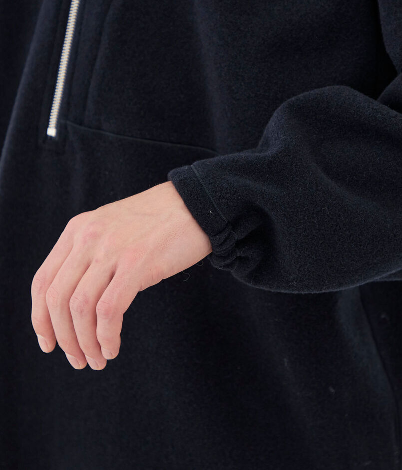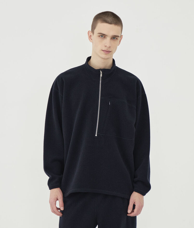 プルオーバーは深めのハーフジップデザインとほど良いゆとりのあるフォルムがスポーティーな印象の一着。