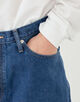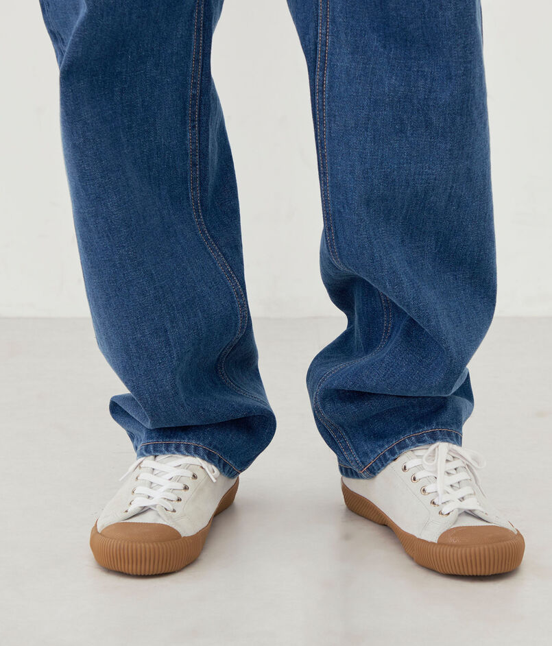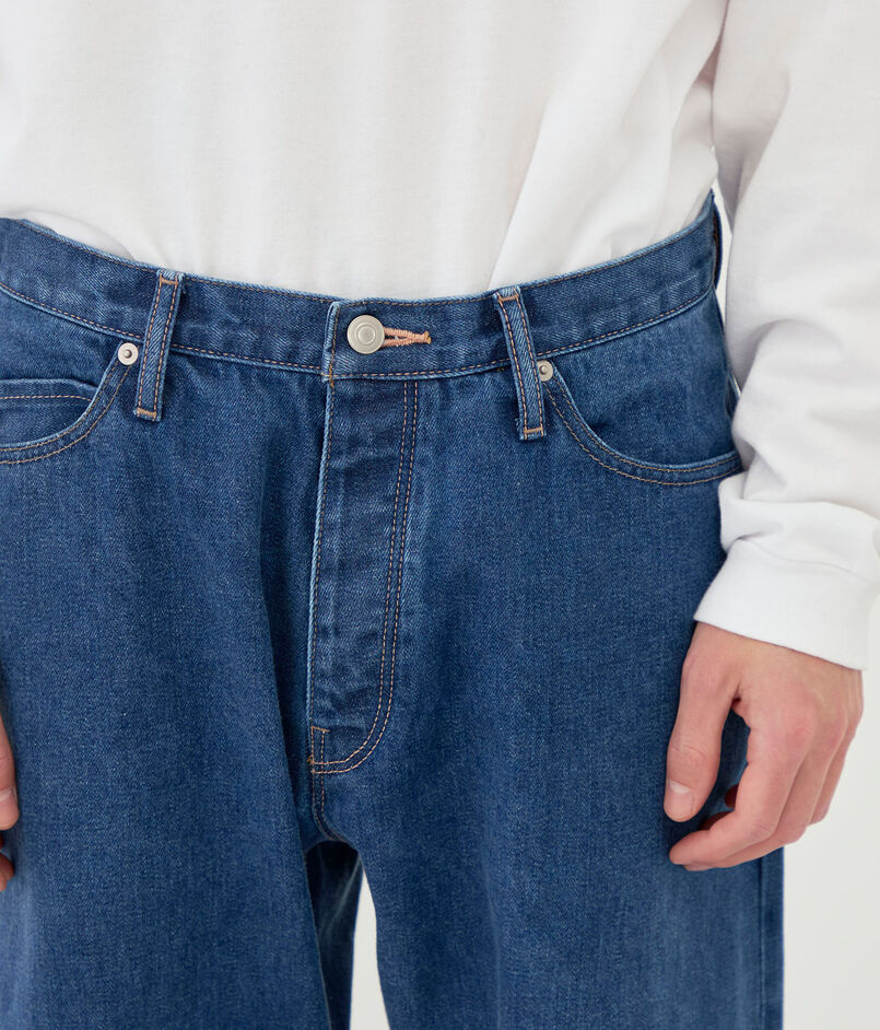 糸を紡績するときにできる落ち綿を集めて再利用し、デニムの命である表面感を出すためムラ糸にして織り上げたオリジナル素材を使用しています。