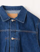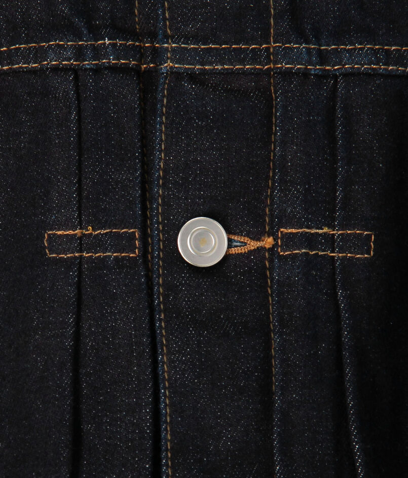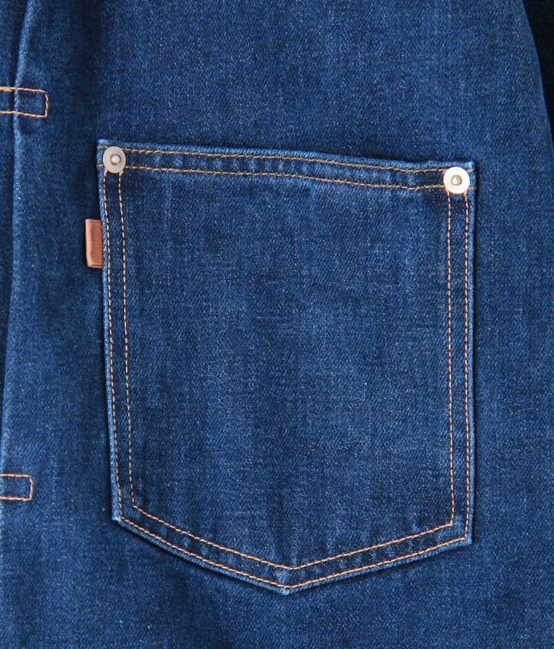糸を紡績するときにできる落ち綿を集めて再利用し、デニムの命である表面感を出すためムラ糸にして織り上げたオリジナル素材を使用しています。