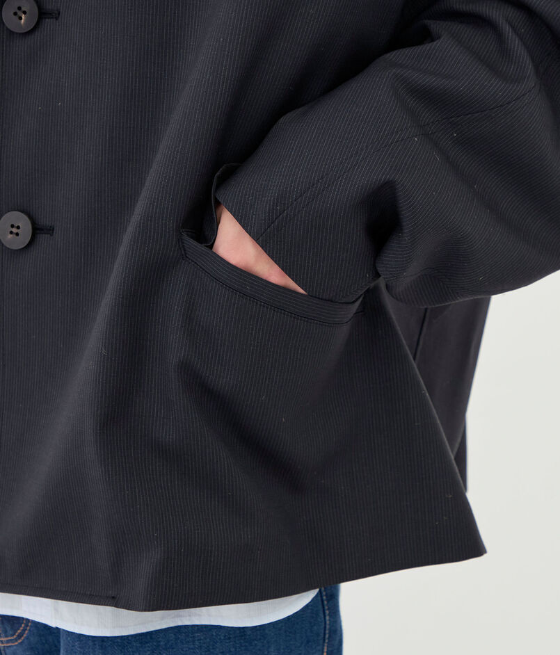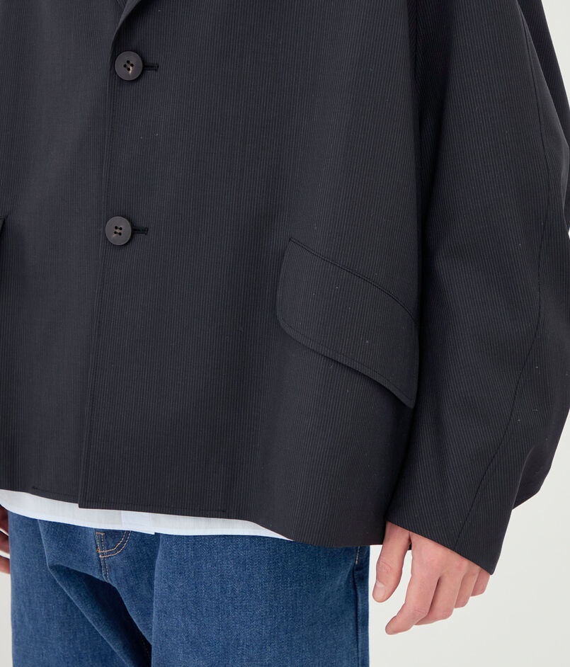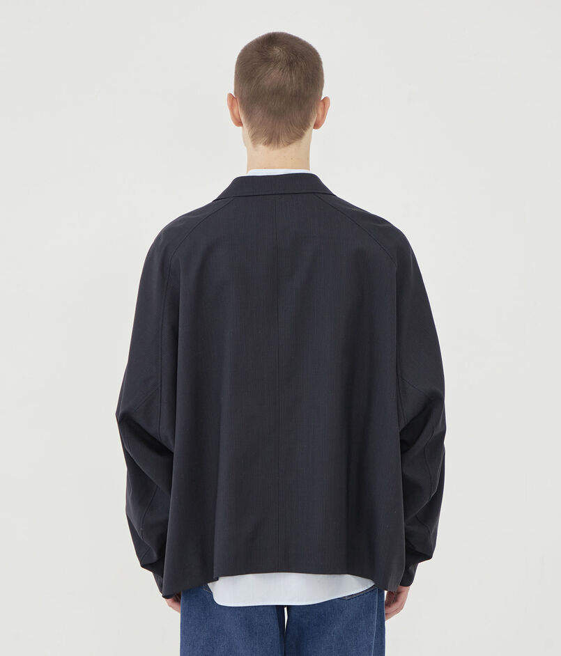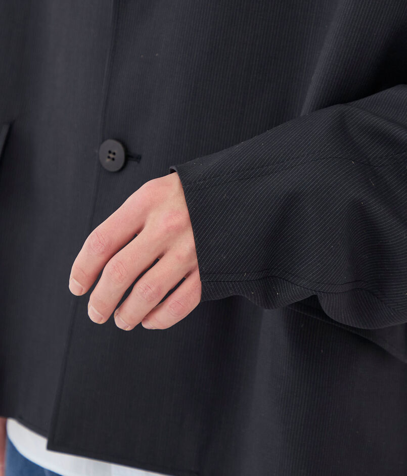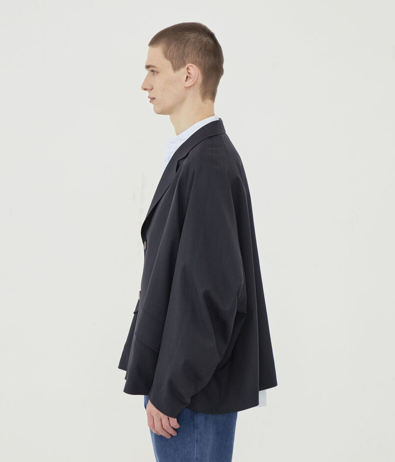 チェスターコートのようなラペルカラーがデザインポイントのジャケット。