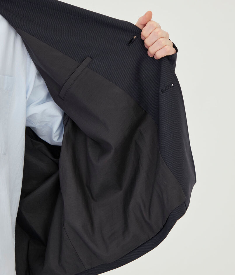 ソリッドなチャコールグレー、繊細なチョークストライプ柄の2色展開。