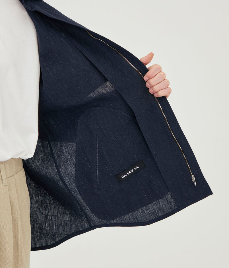 ジャケットはシャツディテールとジップアップデザインのコンビネーションが新鮮な一着です。