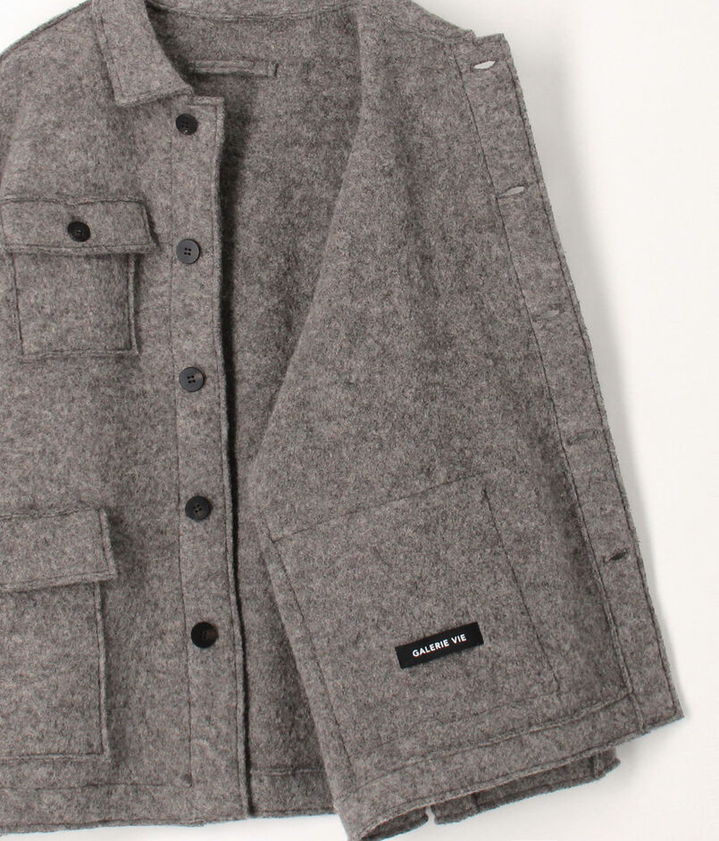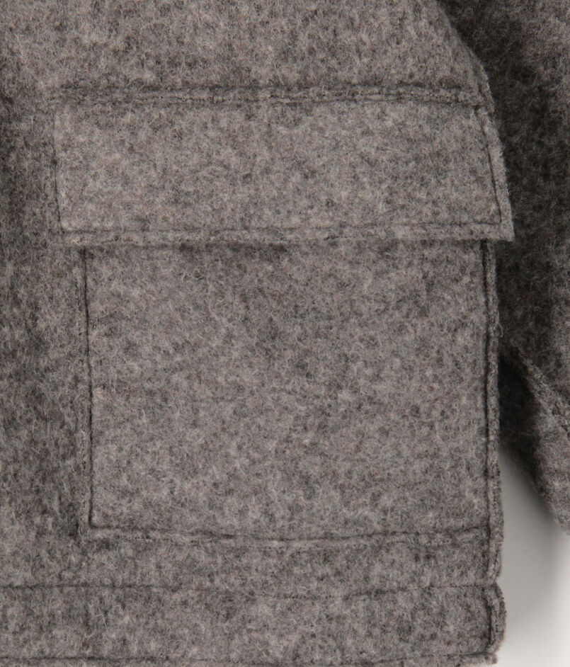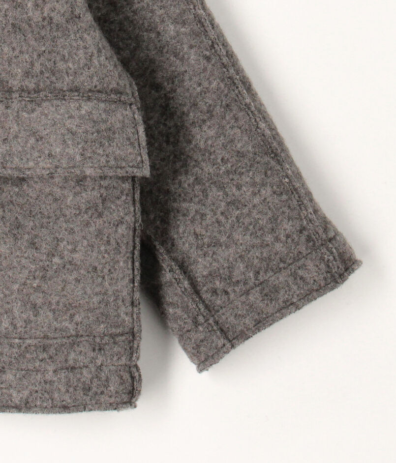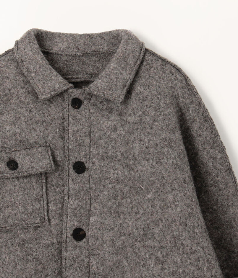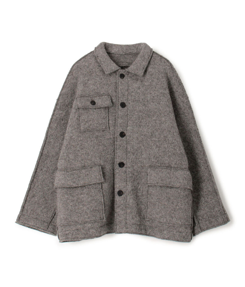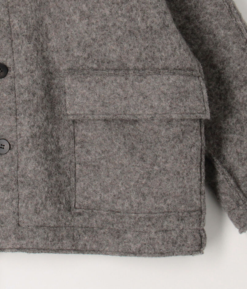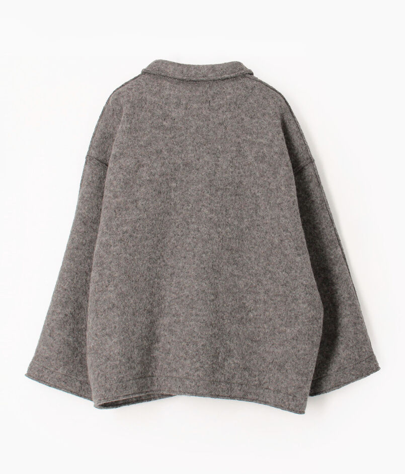 アルパカ混のループ糸を使用して編んだジャージーを起毛させ、羊のような風合いを出したカバーオール型ジャケット。