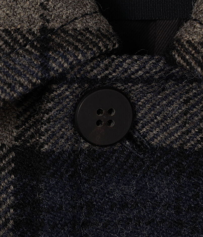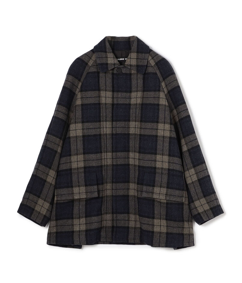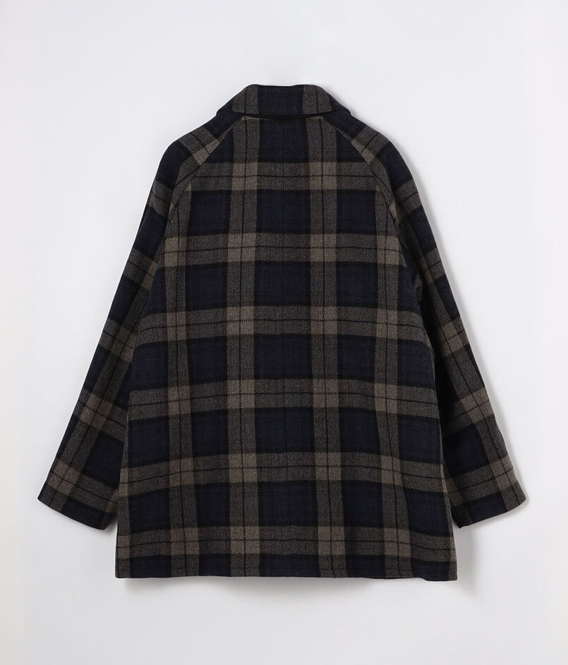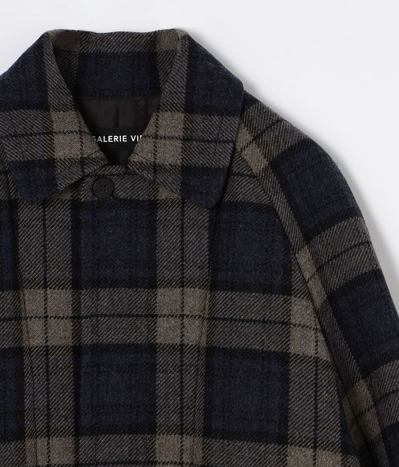 ビッグスケールのタータンチェック柄が目を惹くコート。