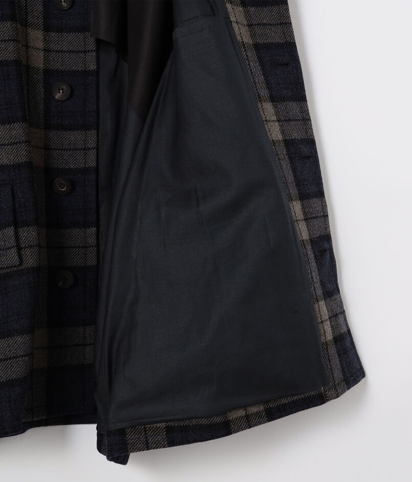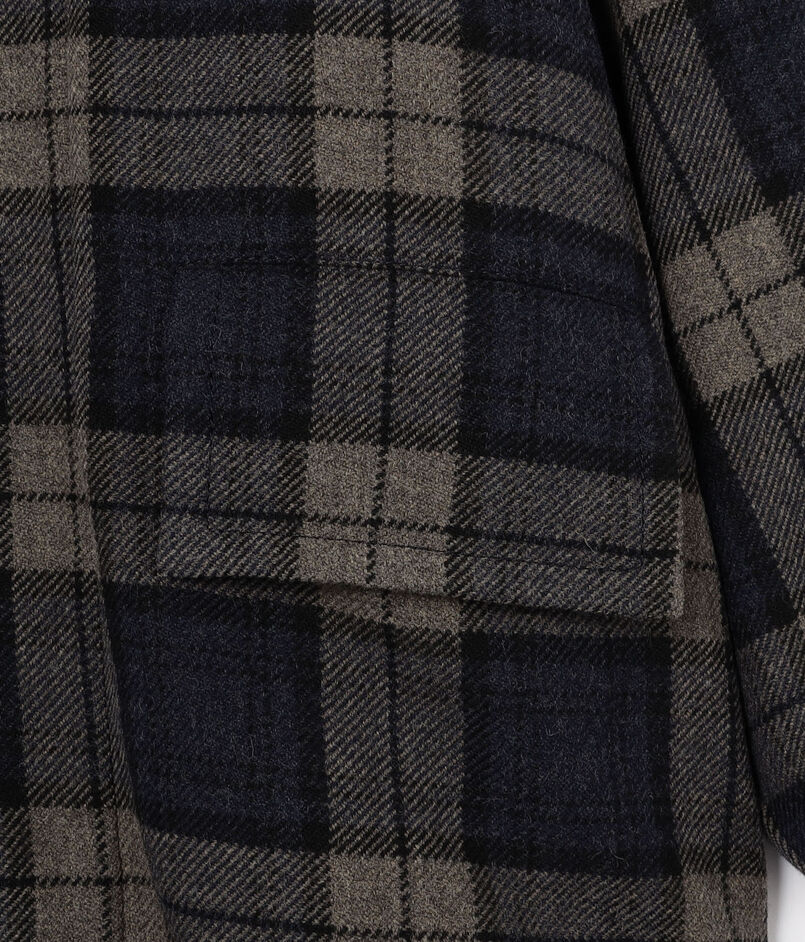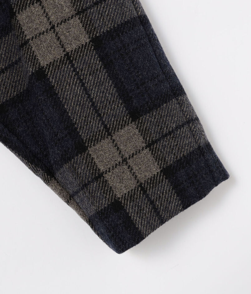 ビンテージのブランケットのようなカラーを表現するためにチェック柄の生地を薄い染料で更にオーバーダイした、こだわりのイタリア製ウール素材を使用しています。