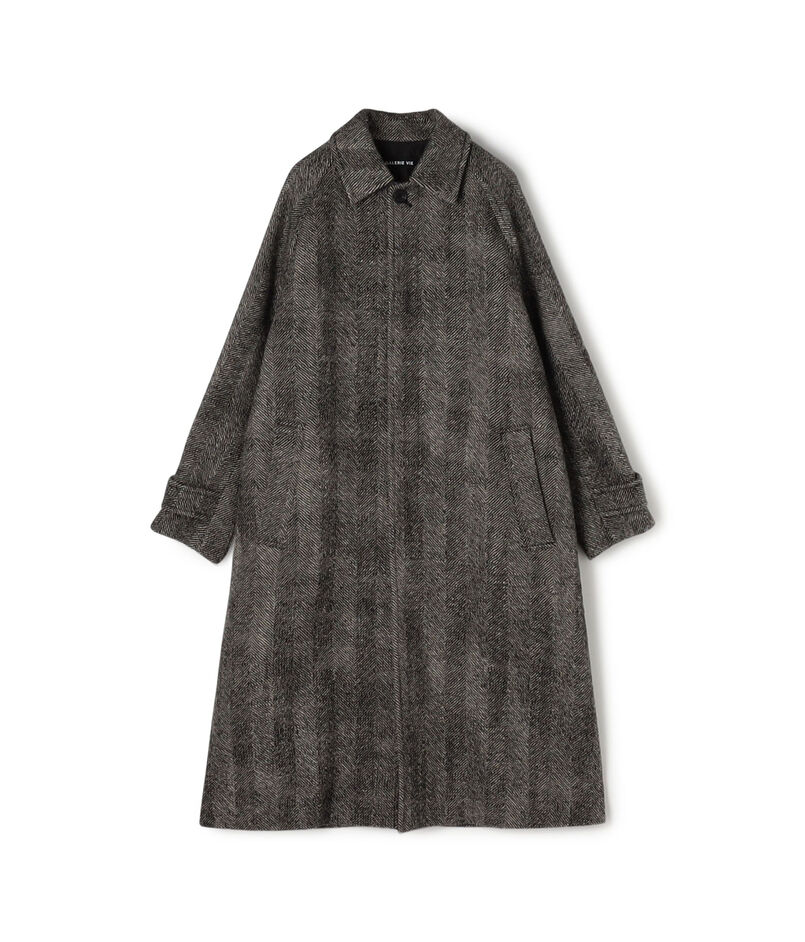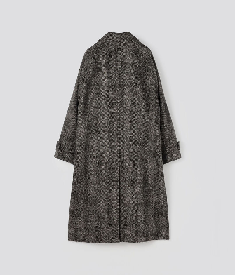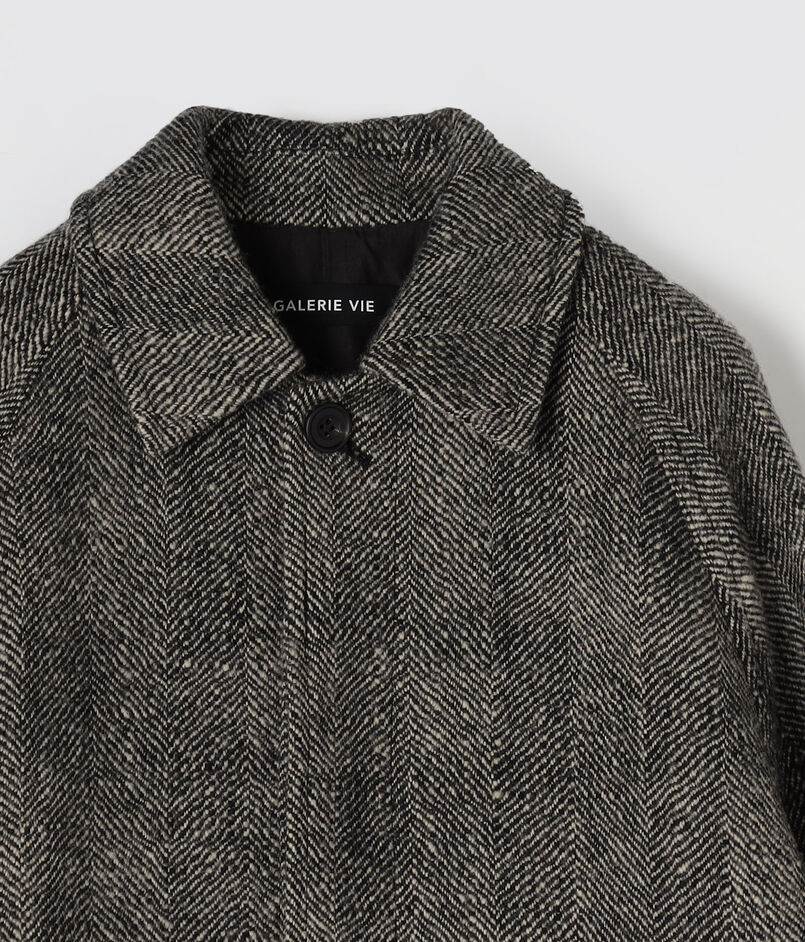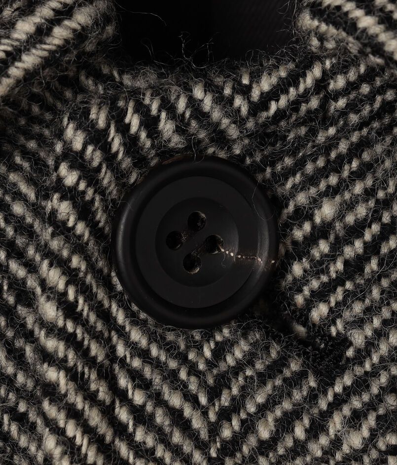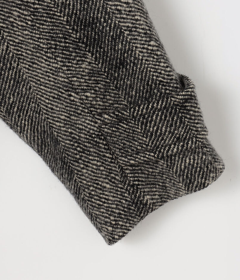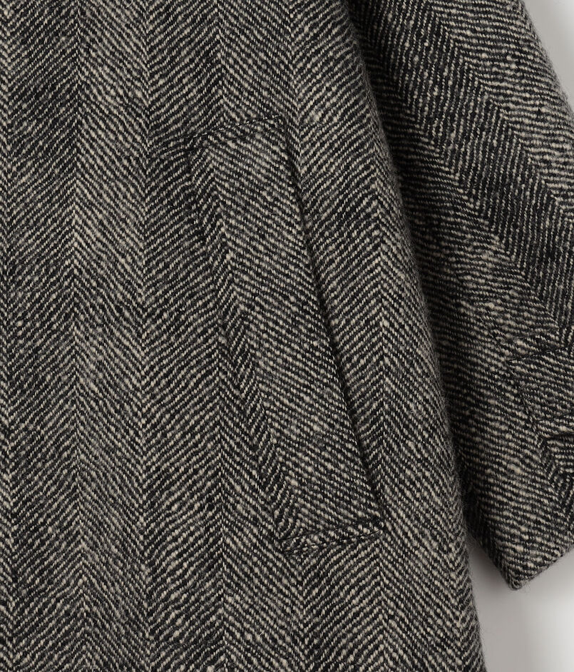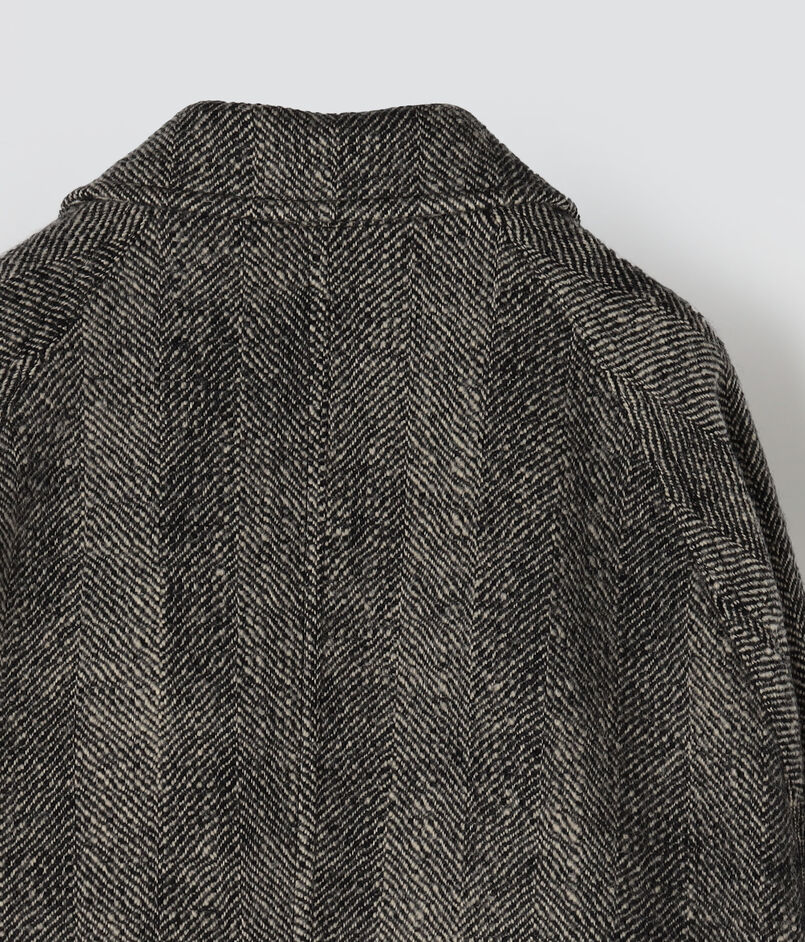 原毛そのままのナチュラルカラーとブラックの紡毛を交差させて織り上げたツイード素材のコート。