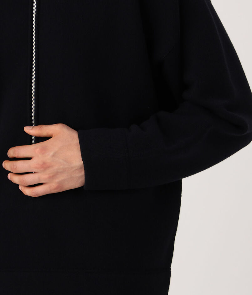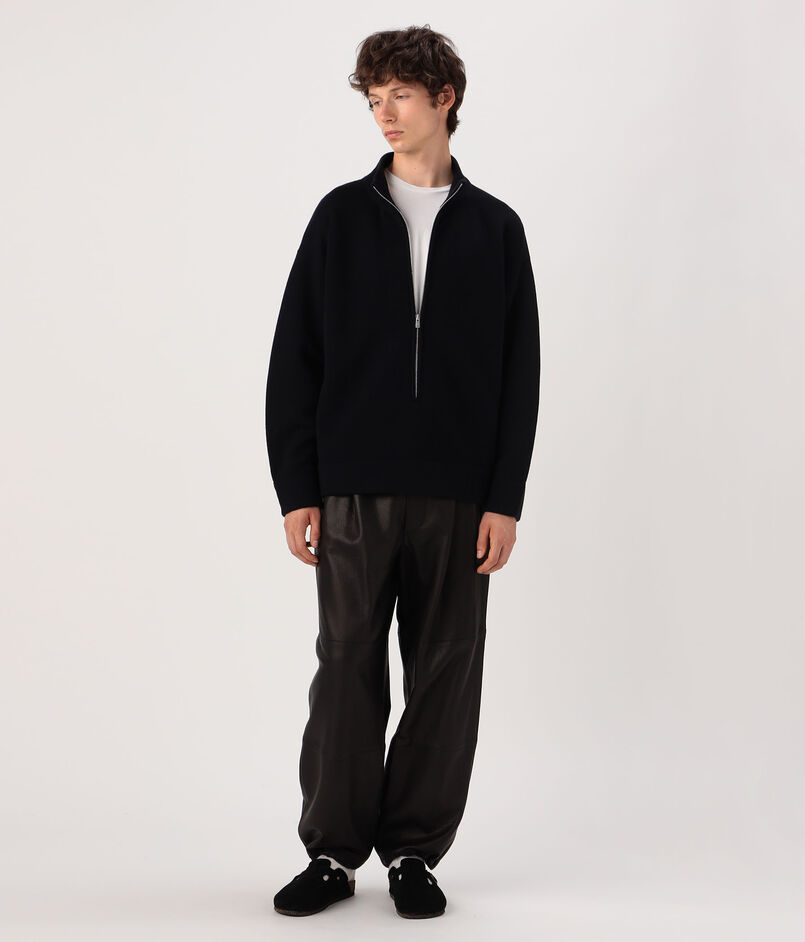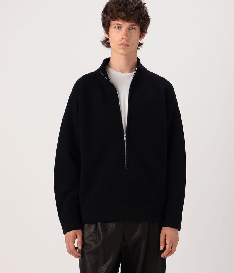 ハイネックと深めのジップアップのデザインでスポーティーなバランスに。