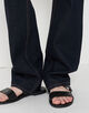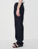 パンツは絶妙な太さのストレートシルエットで抜け感がありつつも、腰骨の上に掛かるジャストウエストのデザインでカジュアル過ぎないすっきりとしたバランスに。