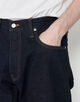 糸を紡績するときにできる落ち綿を集めて再利用し、デニムの命である表面感を出すためムラ糸にして織り上げたオリジナル素材を使用しています。