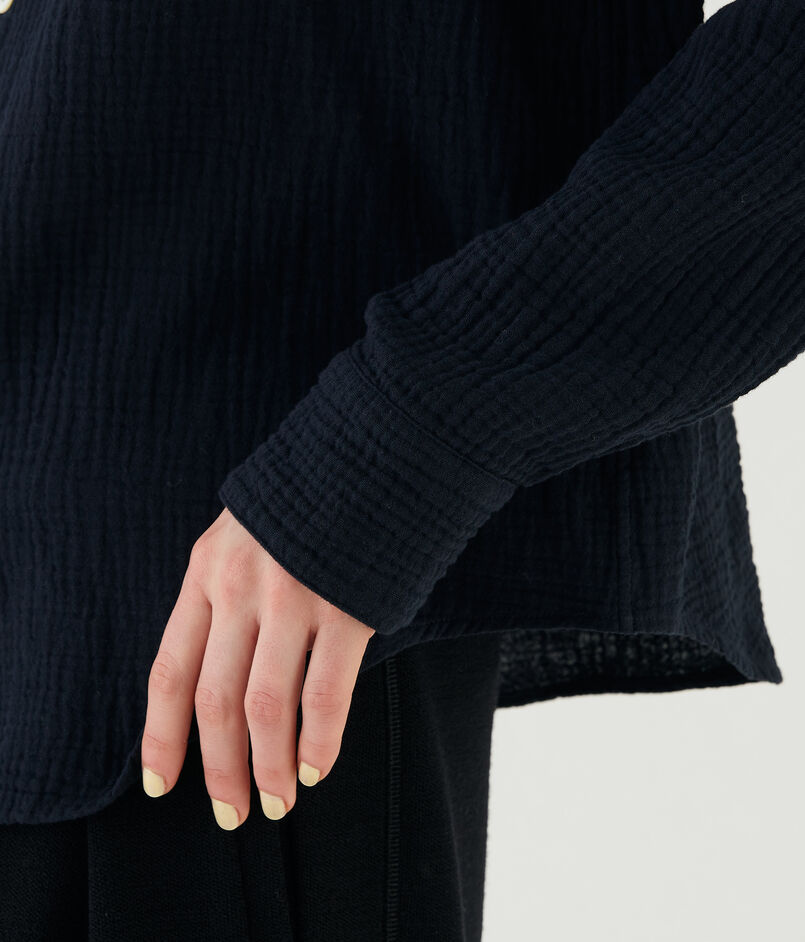 軽く柔らかなガーゼの二重織り素材に製品染めして仕上げたシリーズ。
