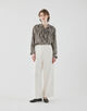 襟ぐりから通した細い紐はそのまま垂らしてラフに着こなすのがおすすめです。