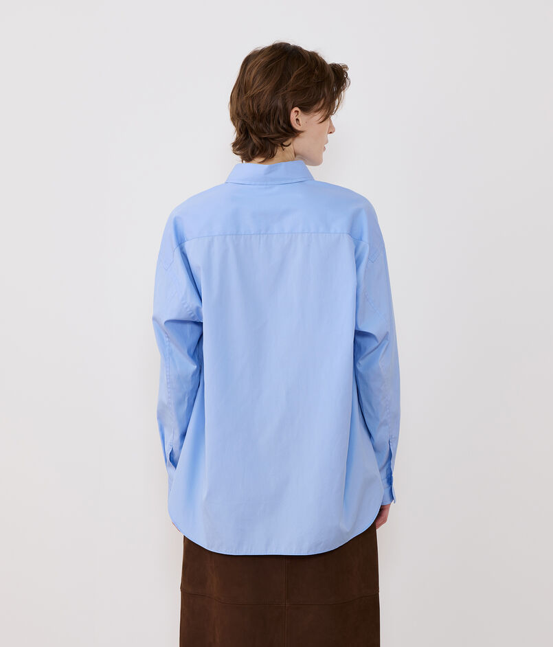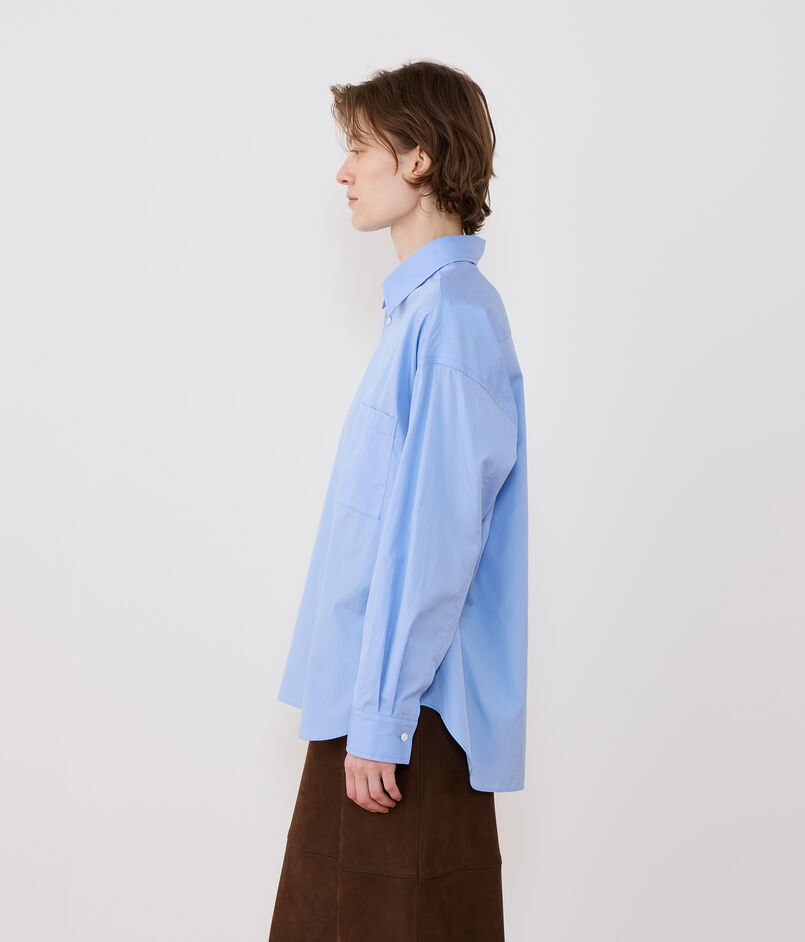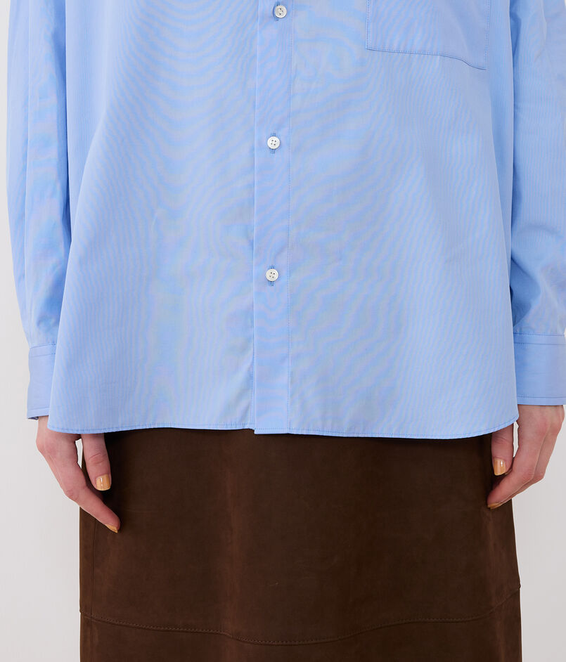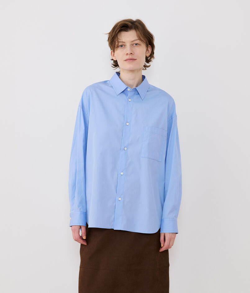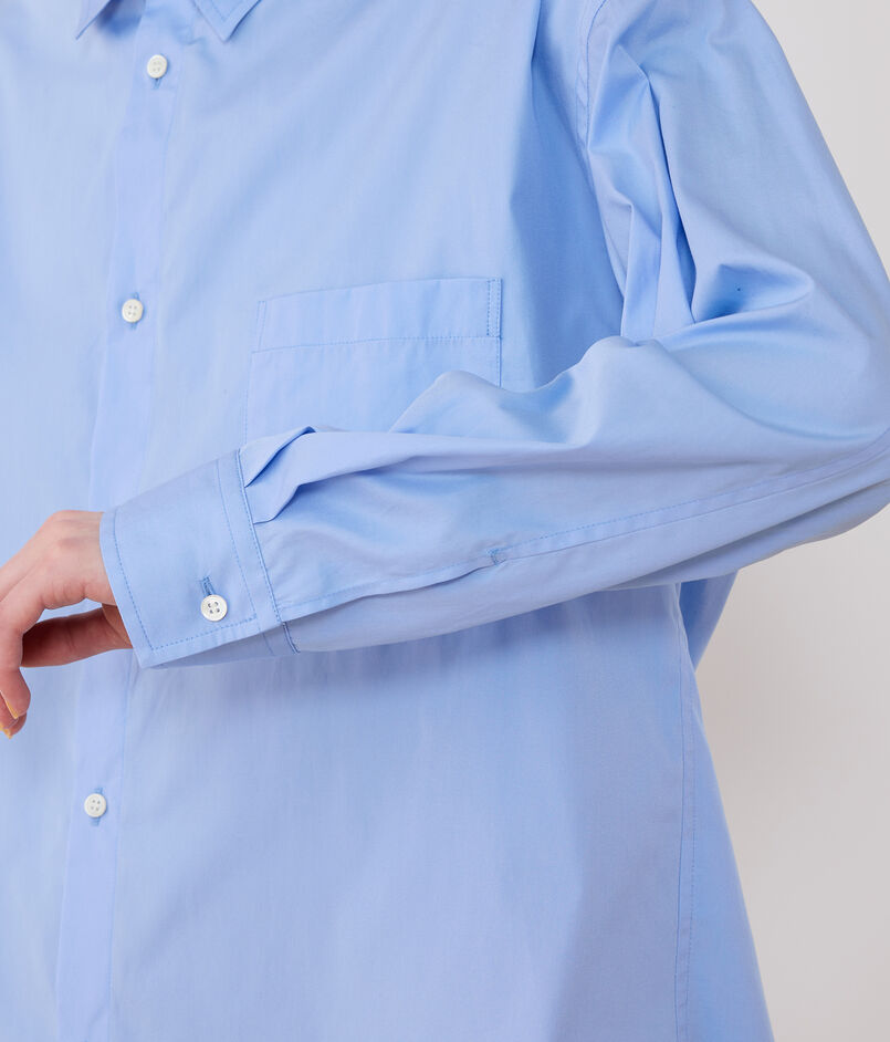 メンズのシャツを着ているようなほど良くゆとりを持たせたシルエットがポイントのシャツ。