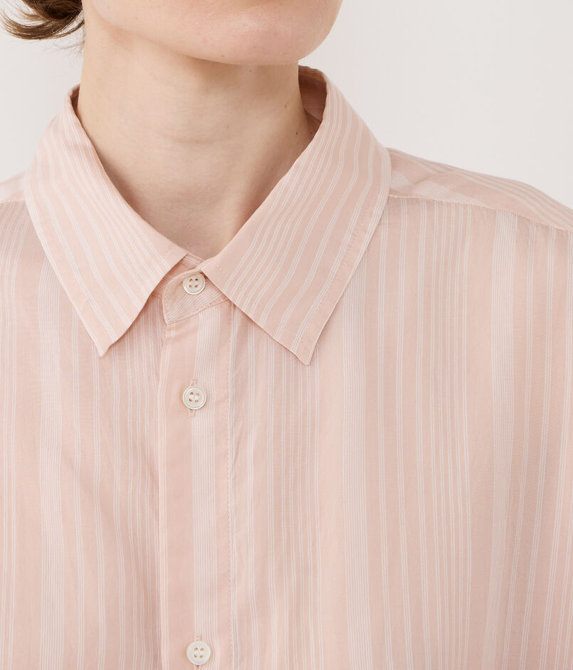 ソフトかつしなやかな風合いが魅力のシルクレーヨンのブロード素材を使用したシャツ。