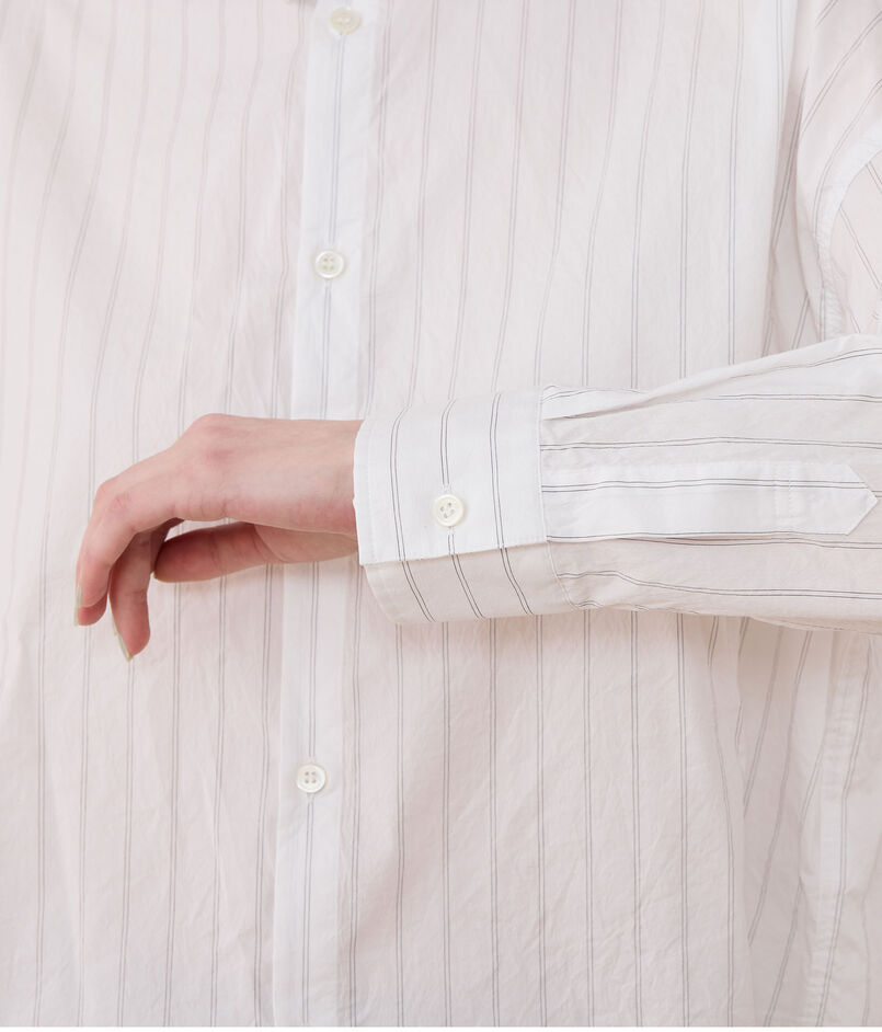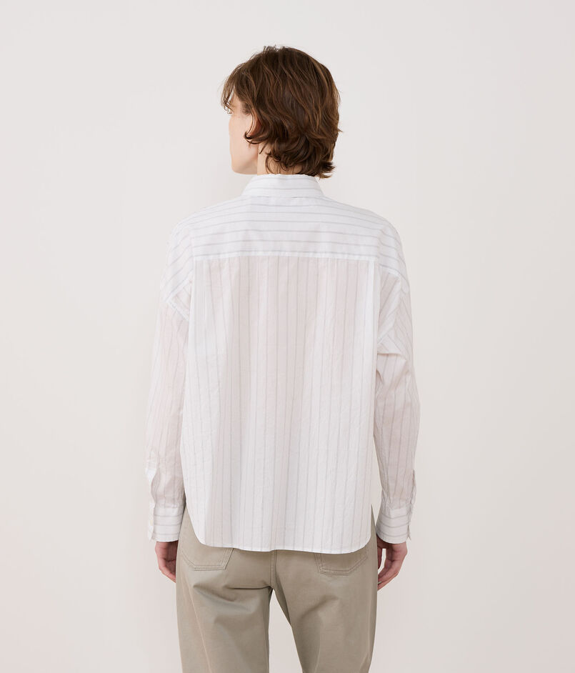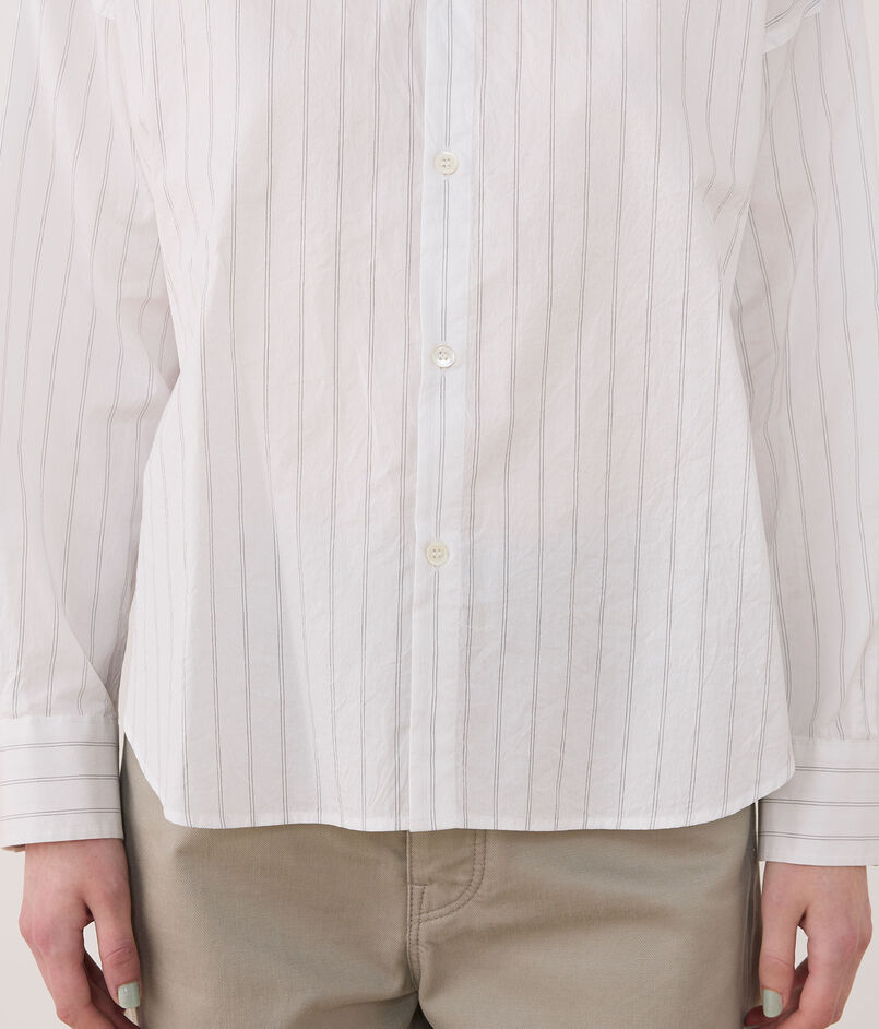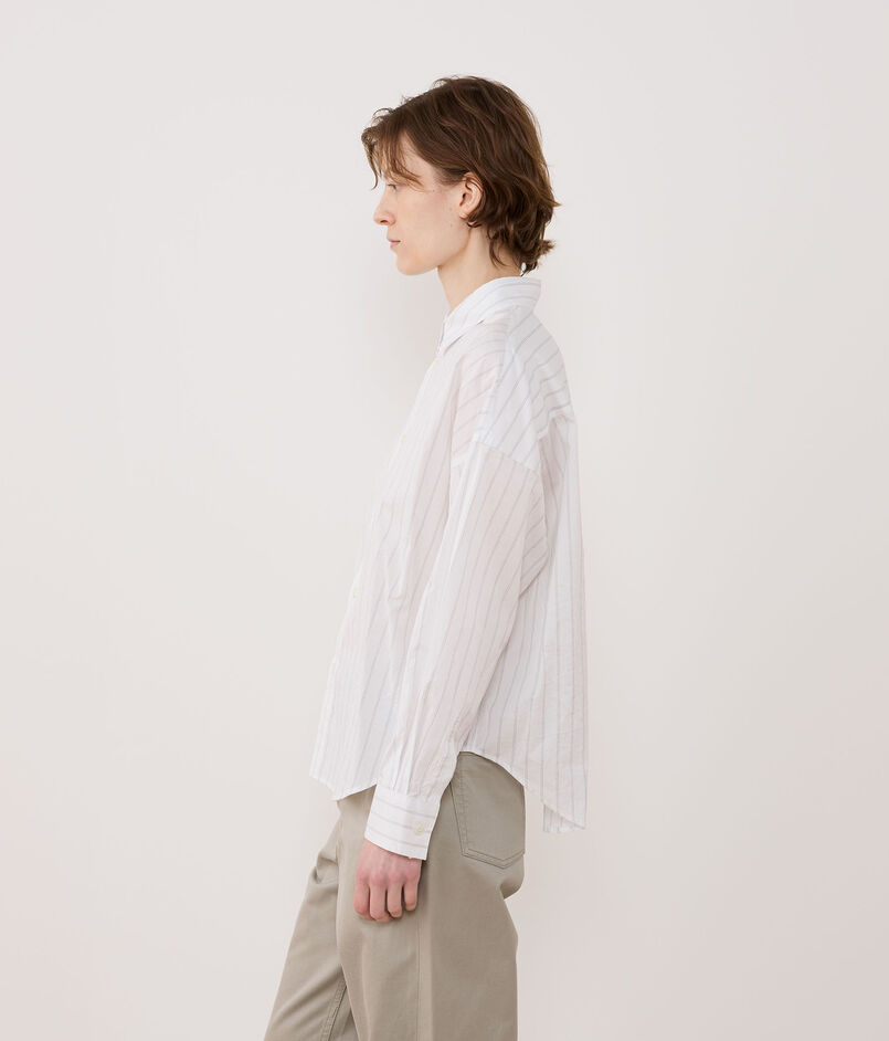 空気をはらむようなゆったりとしたシルエットが軽やかな印象のドロップショルダーシャツ。