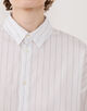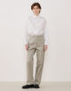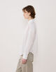 タテ糸にシルクのオーガンジーを、ヨコ糸に細番手のコットン糸を使用したブロード素材のシャツ。