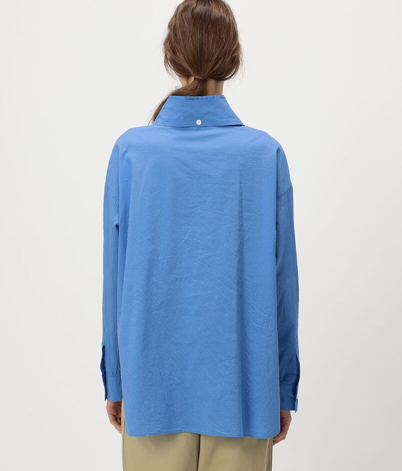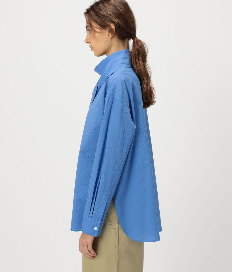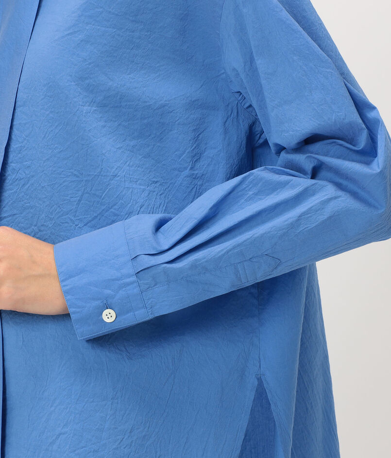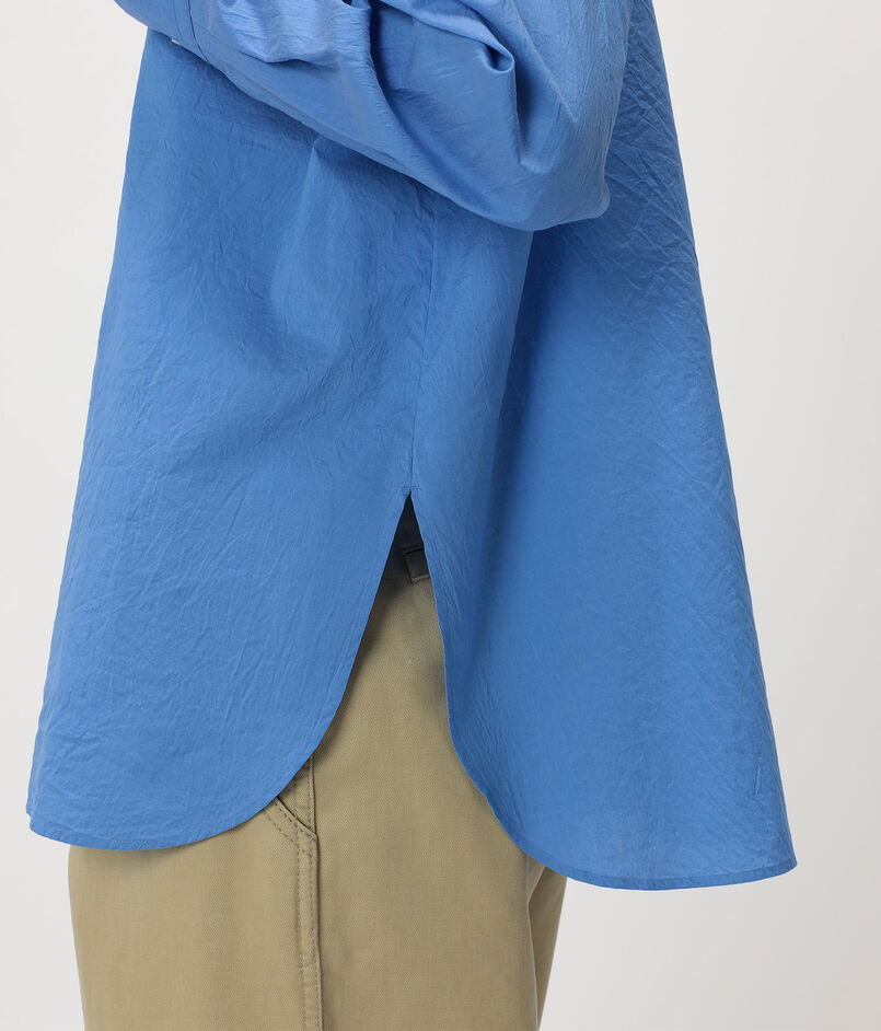 タテ糸にシルクのオーガンジーを、ヨコ糸に細番手のコットン糸を使用したブロード素材のシャツ。