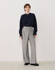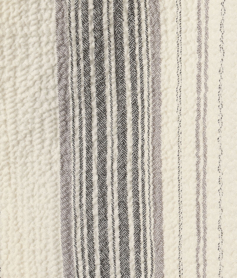 クリーンなホワイトとネイビー、繊細なミニヘリンボーンの織りと余白を意識した上品なムードのストライプ柄の3色展開です。