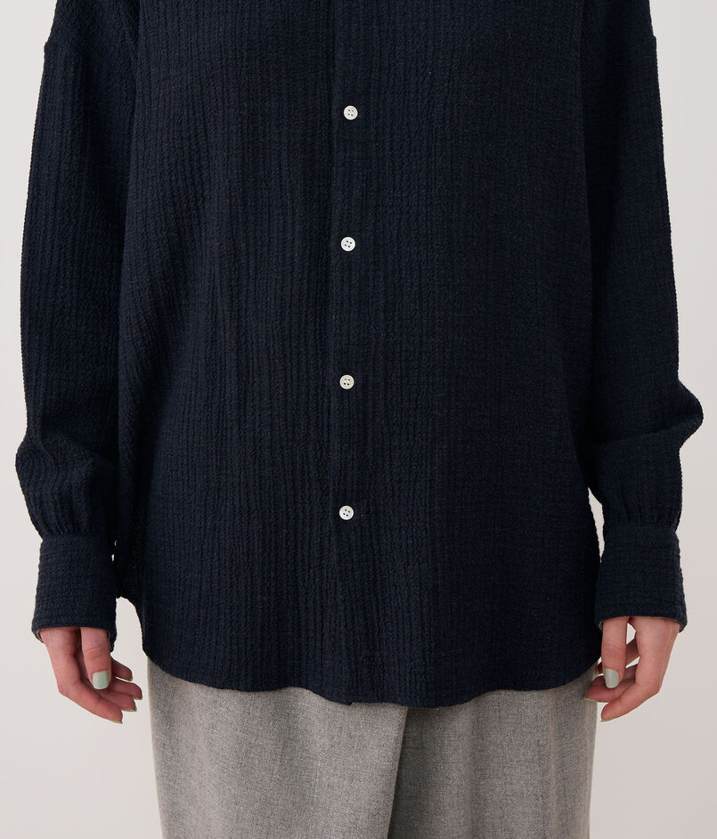 カシミヤブレンドのサッカー素材を使用したシャツシリーズ。