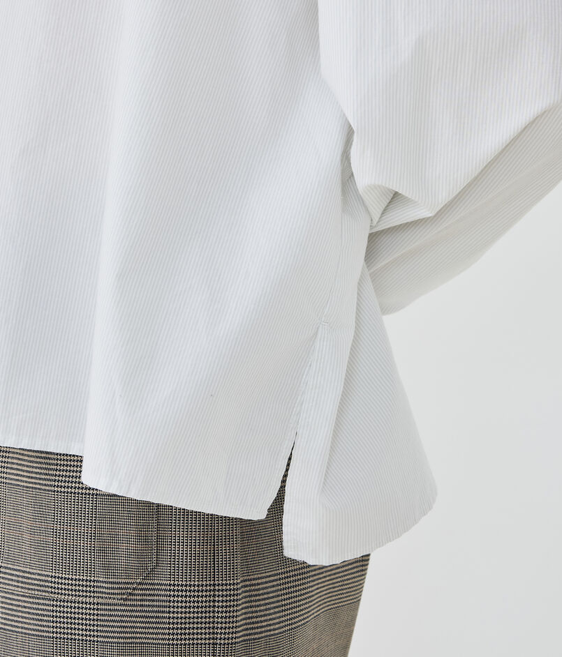 襟はコンパクトなサイズ感で主張し過ぎず、ミニマルな印象に。