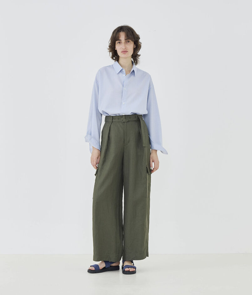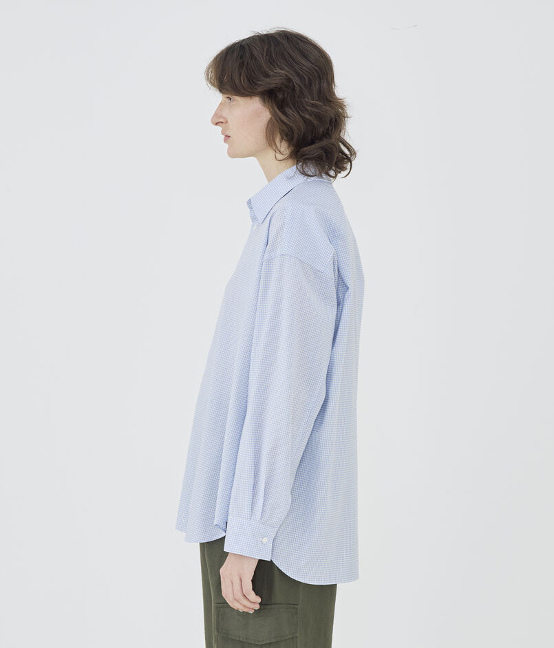 メンズシャツのようなゆとりを持たせたバランスで、そのまま着用するだけでどこかこなれた印象に。