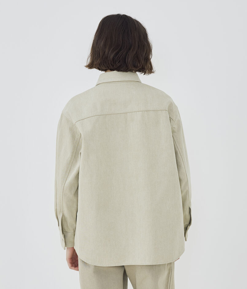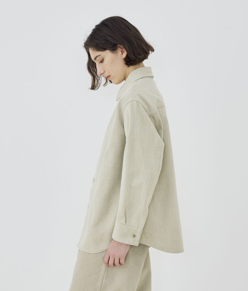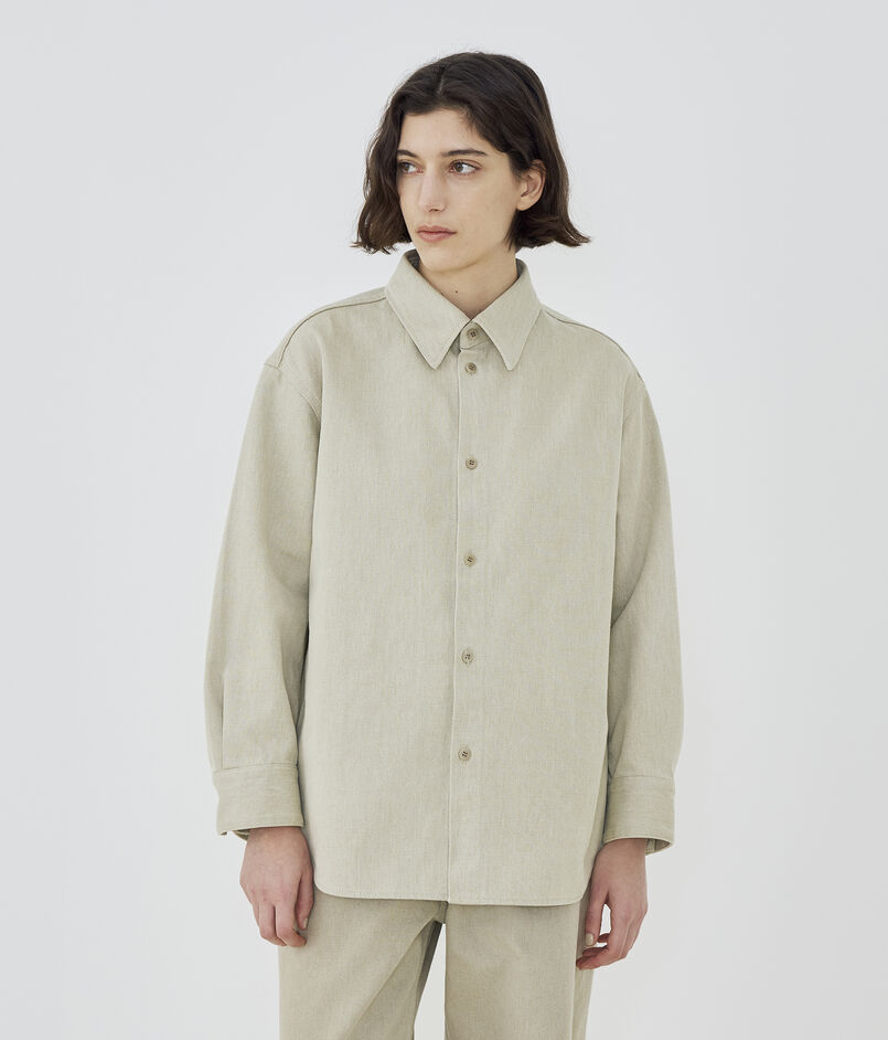 シャツはメンズのカバーオールシャツをベースにしつつ、身幅や肩幅を調整することでゆとりがありながらもだらしなく見えない絶妙なバランスに仕上げました。