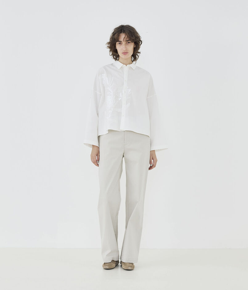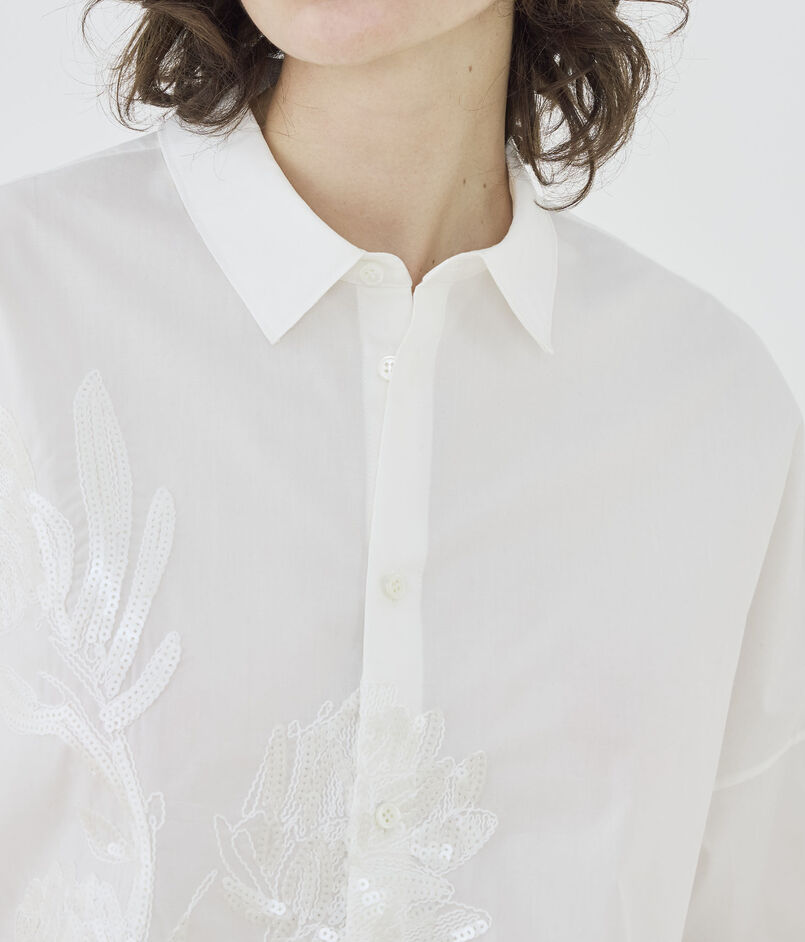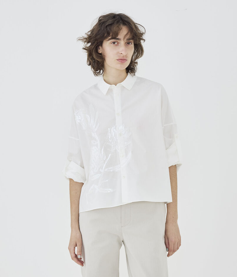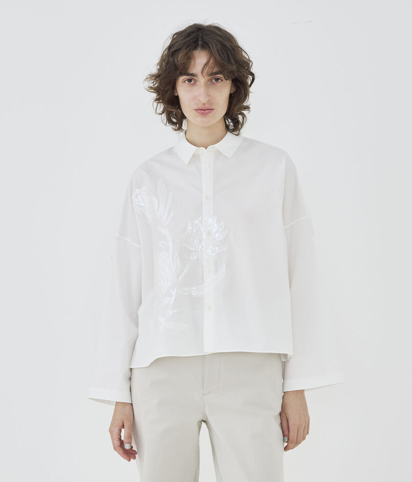 コットンポプリンエンブロイダリー ワイドバランスシャツ